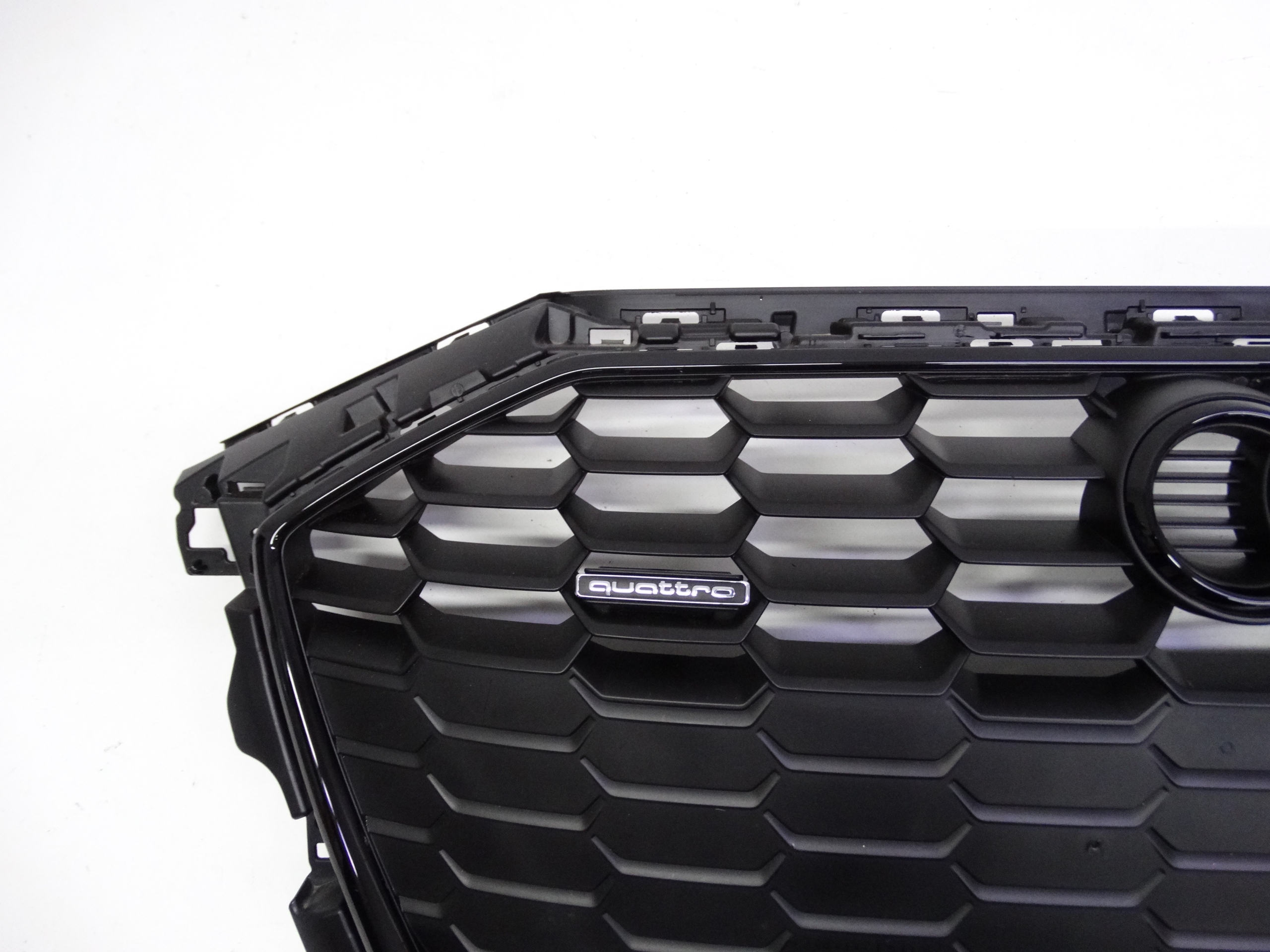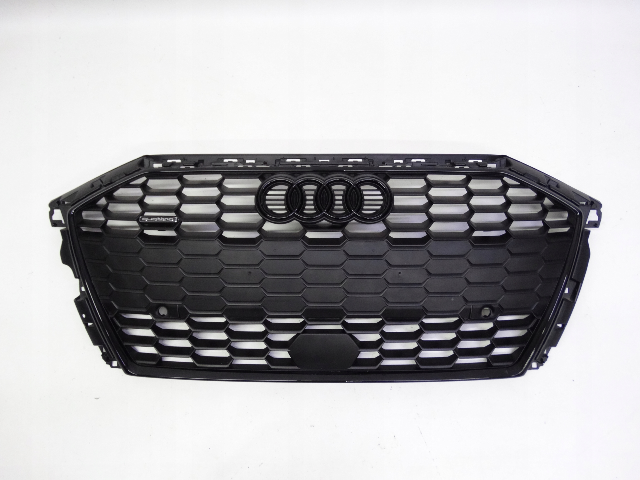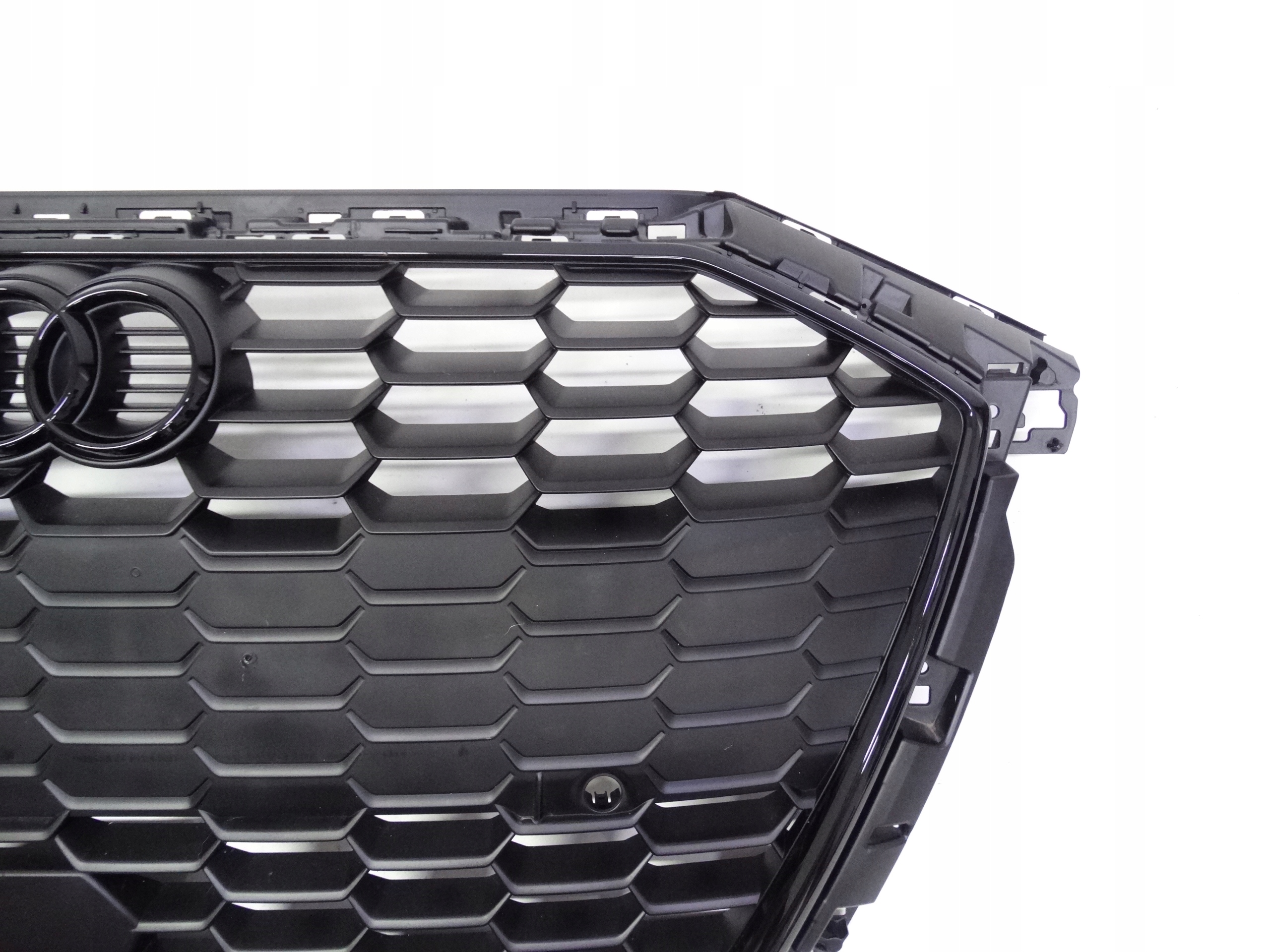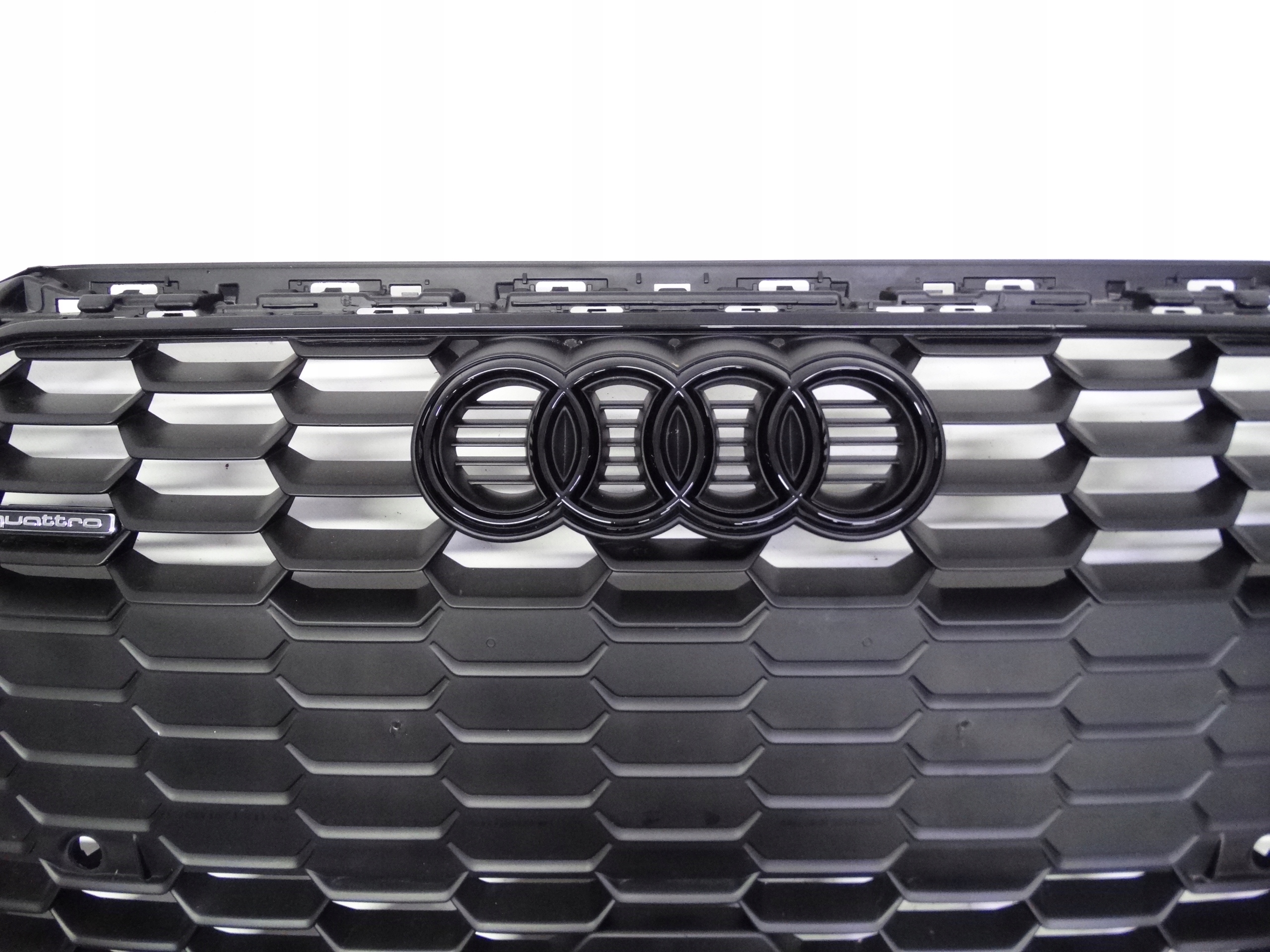 Oferujemy oryginalny grill do Audi A3 8Y S-Line 2020-2024. Grill w bardzo dobrym stanie, cały, bez pęknięć i wyłamań, nienaprawiany. Wszystkie zaczepy całe, oryginalne, nienaprawiane. Ramka cała, bez pęknięć i wyłamań, posiada lekkie zarysowanie w dolnej części. Stan widoczny jest na zdjęciach.