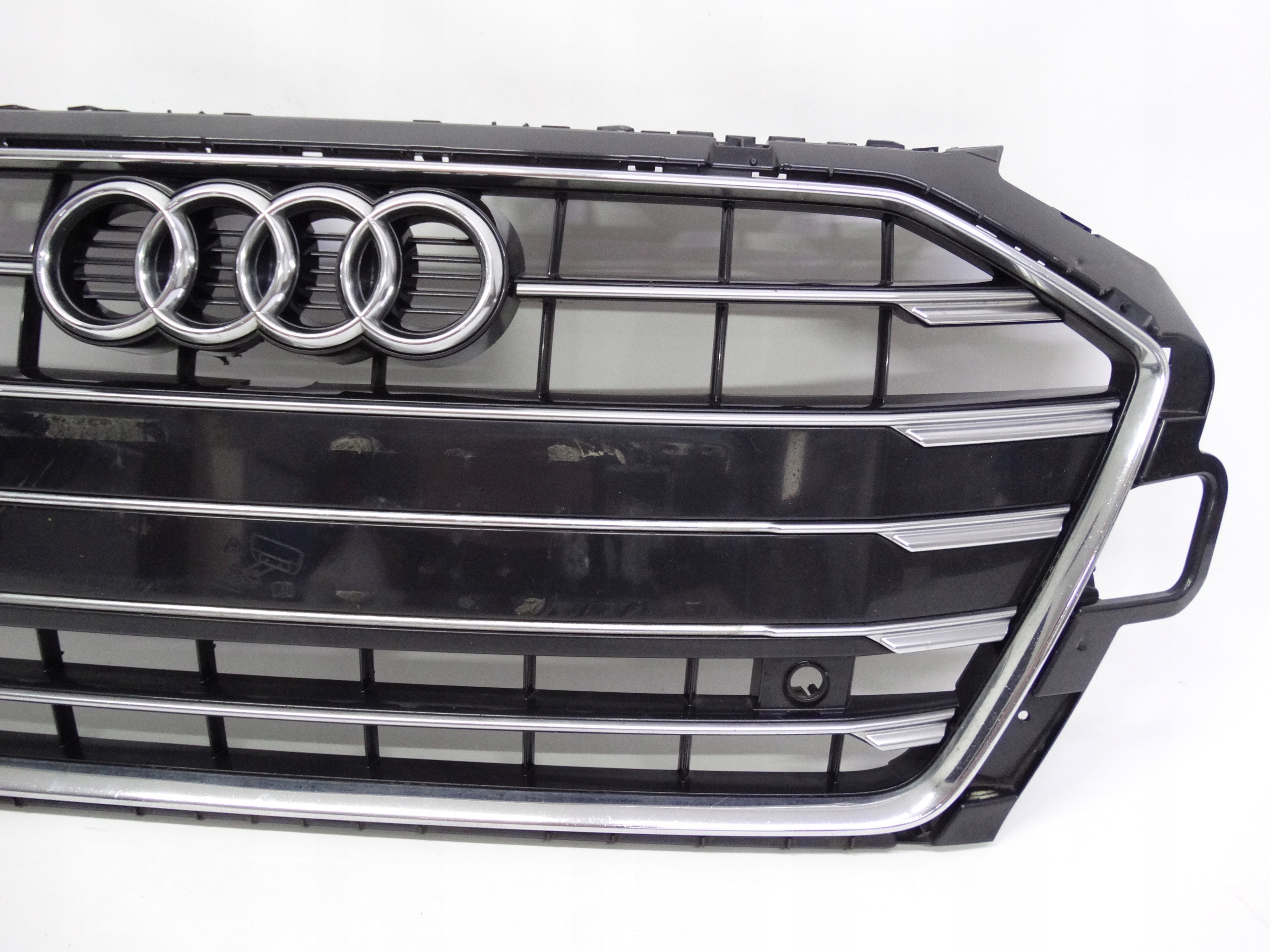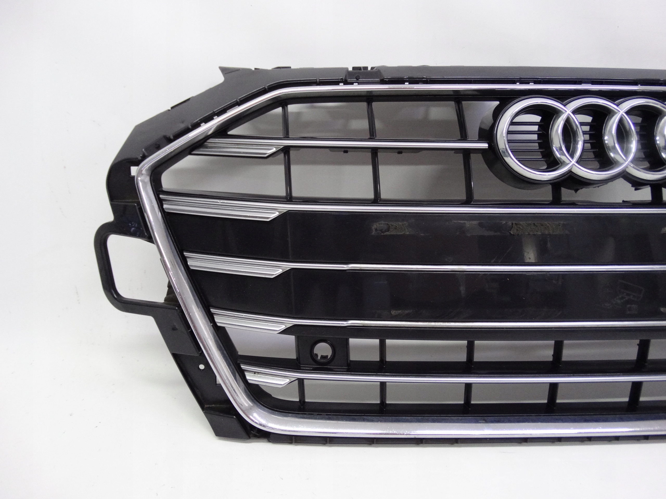 Oferujemy oryginalny grill do Audi A4 B9 Lift 8W 2019-2024. Grill w bardzo dobrym stanie, nienaprawiany, bez pęknięć i złamań, z wycięciem pod kamerę, stan widoczny jest na zdjęciach.