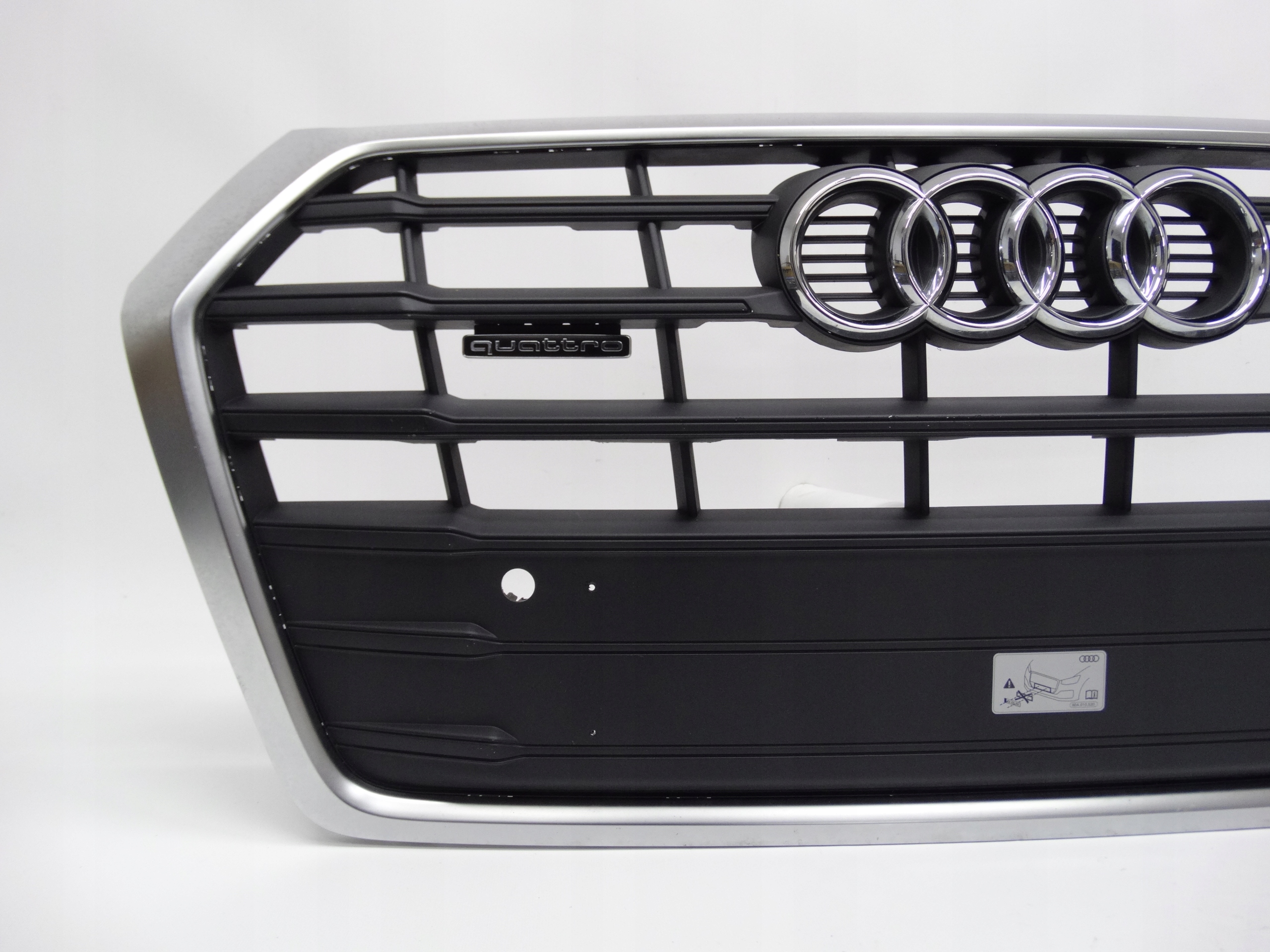 Oferujemy oryginalny grill do Audi Q5 II 16-20. Grill w bardzo dobrym stanie, cały, nienaprawiany, bez pęknięć i wyłamań. Wszystkie zaczepy całe, oryginalne, nienaprawiane. Ramka cała, bez pęknięć i wyłamań, nienaprawiana.