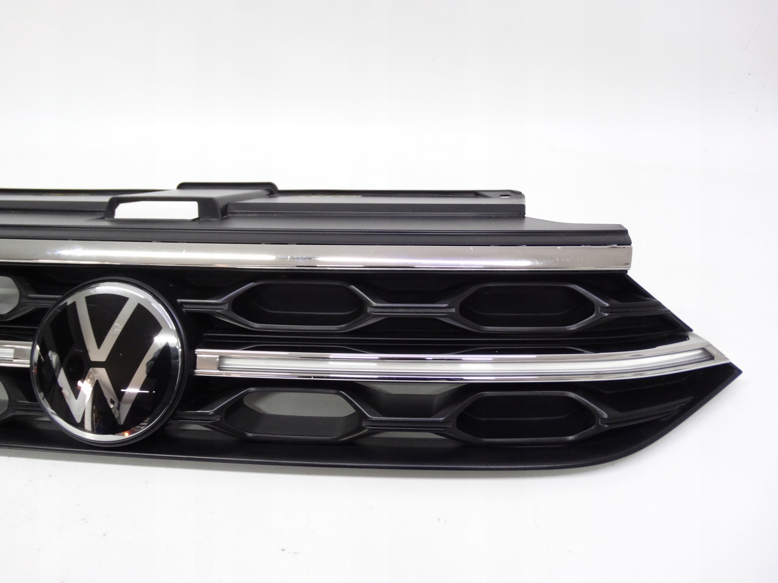 Oferujemy oryginalny grill do VW T-Roc R-line Lift 2021+ wersja z podświetleniem LED. Grill w bardzo dobrym stanie, nienaprawiany, nosi ślady wynikające z normalnego użytkowania, stan widoczny jest na zdjęciach.