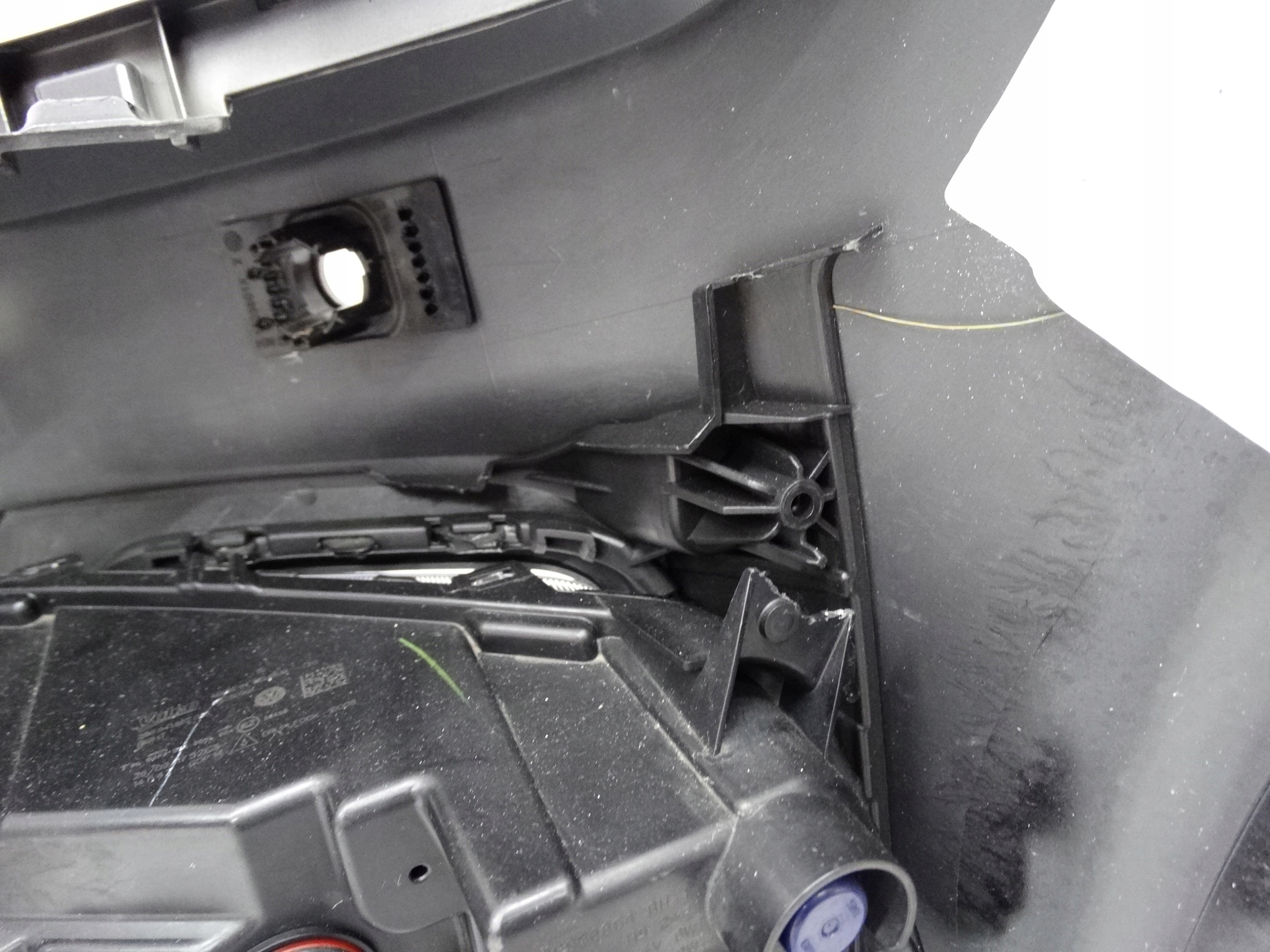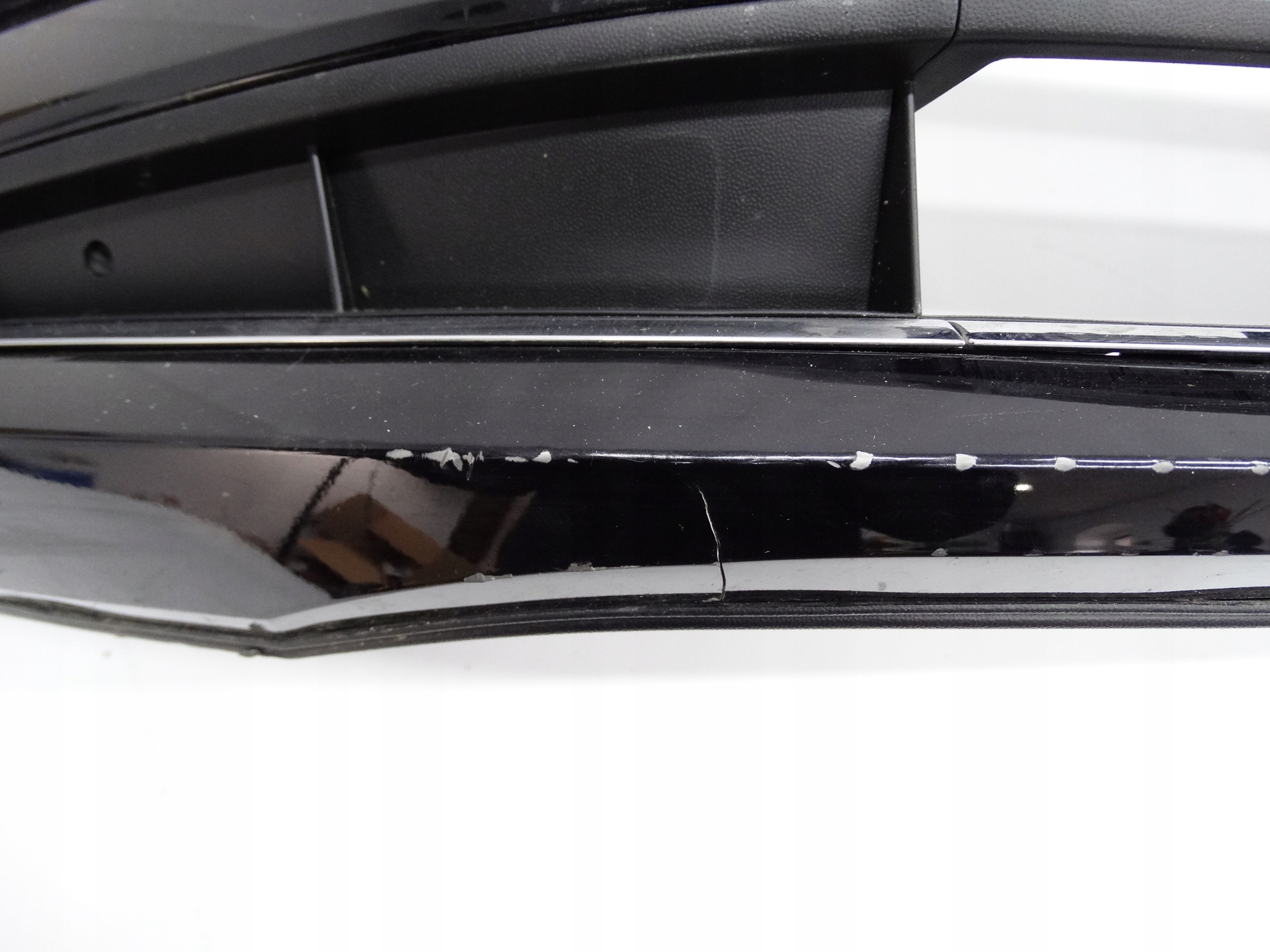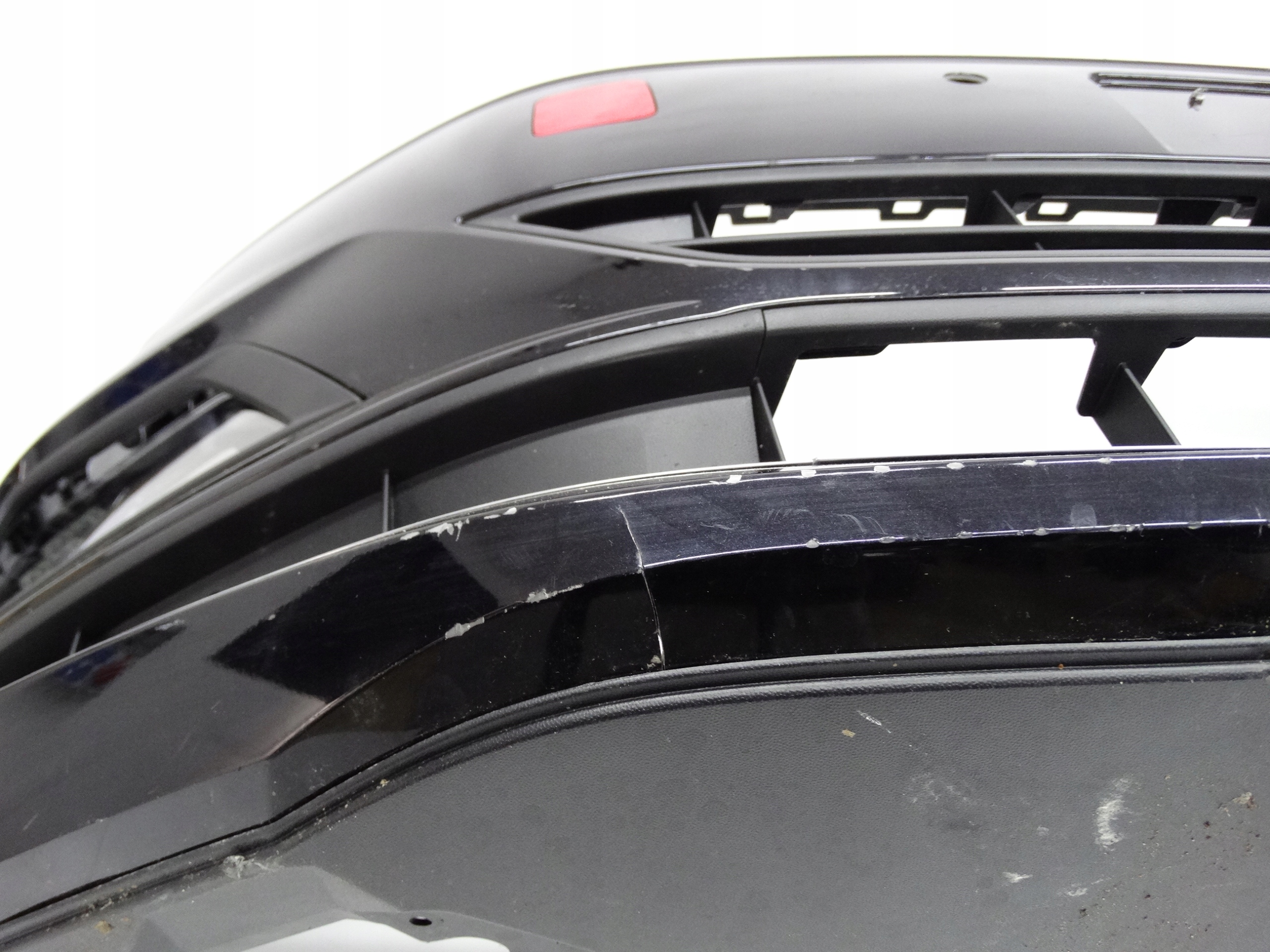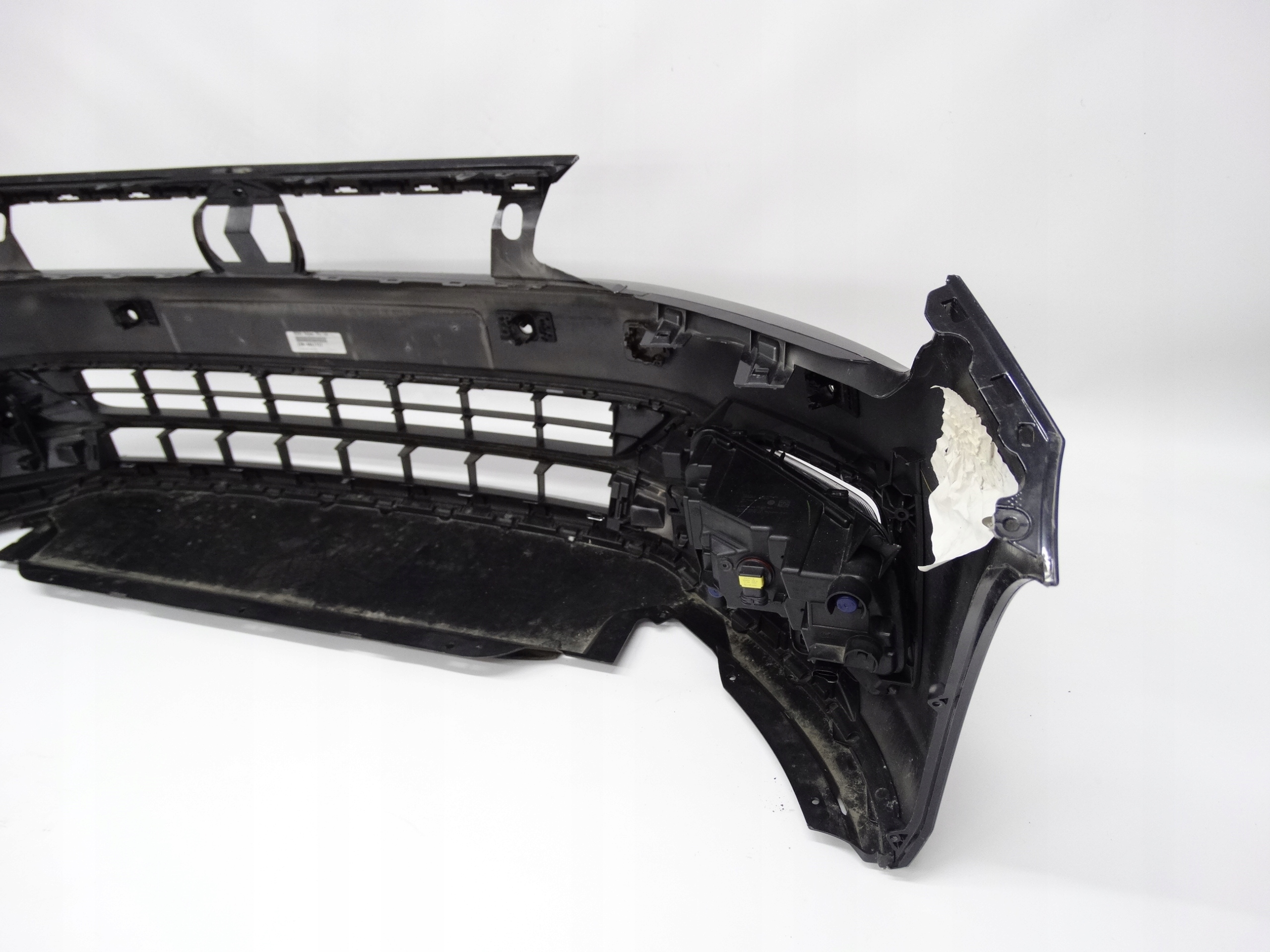 Oferujemy oryginalny przedni zderzak do VW Polo VI 2G 17-21 Highline. Zderzak niemal kompletny, z grillem, kratkami, ślizgami, halogenami i płytą. Grill, kratki, chromy i ślizgi całe, bez pęknięć i złamań. Skorupa w bardzo dobrym stanie, delikatnie uszkodzona – zdjęcie 8 i 9. Halogeny LED sprawne, świecące – uszkodzenia widoczne na zdjęciu nr 5, 6, 12, 13, 14 i 15.