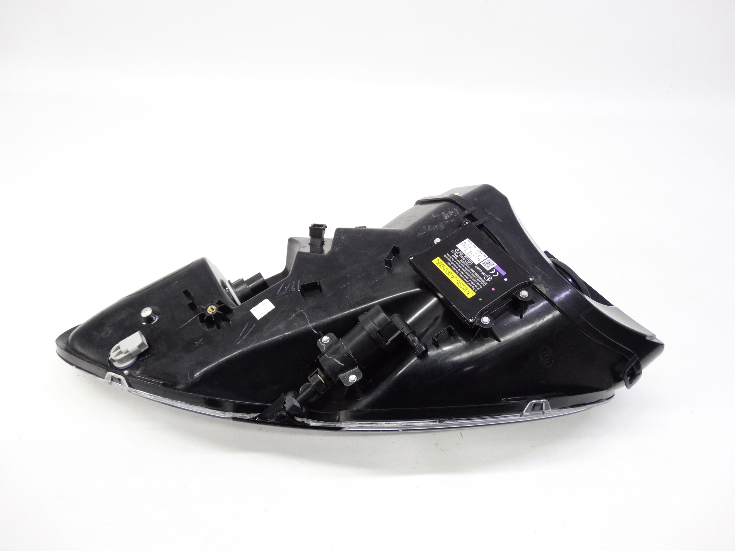 Oferujemy oryginalną przednią prawą lampę Xenon do Aston Martin DB9 2004-2012 / DBS 2007-2012. Lampa cała, w bardzo dobrym stanie, nienaprawiana. Szkło całe, bez dziur, pęknięć i wyłamań, niepolerowane, posiada niewielkie skazy na rancie – zdjęcie nr 5, 6 i 7. Może posiadać niewielkie ślady na powierzchni wynikające z normalnego użytkowania. Puszka cała, bez dziur, pęknięć i wyłamań, wszystkie uchwyty całe, oryginalne, nienaprawiane. Wersja europejska.