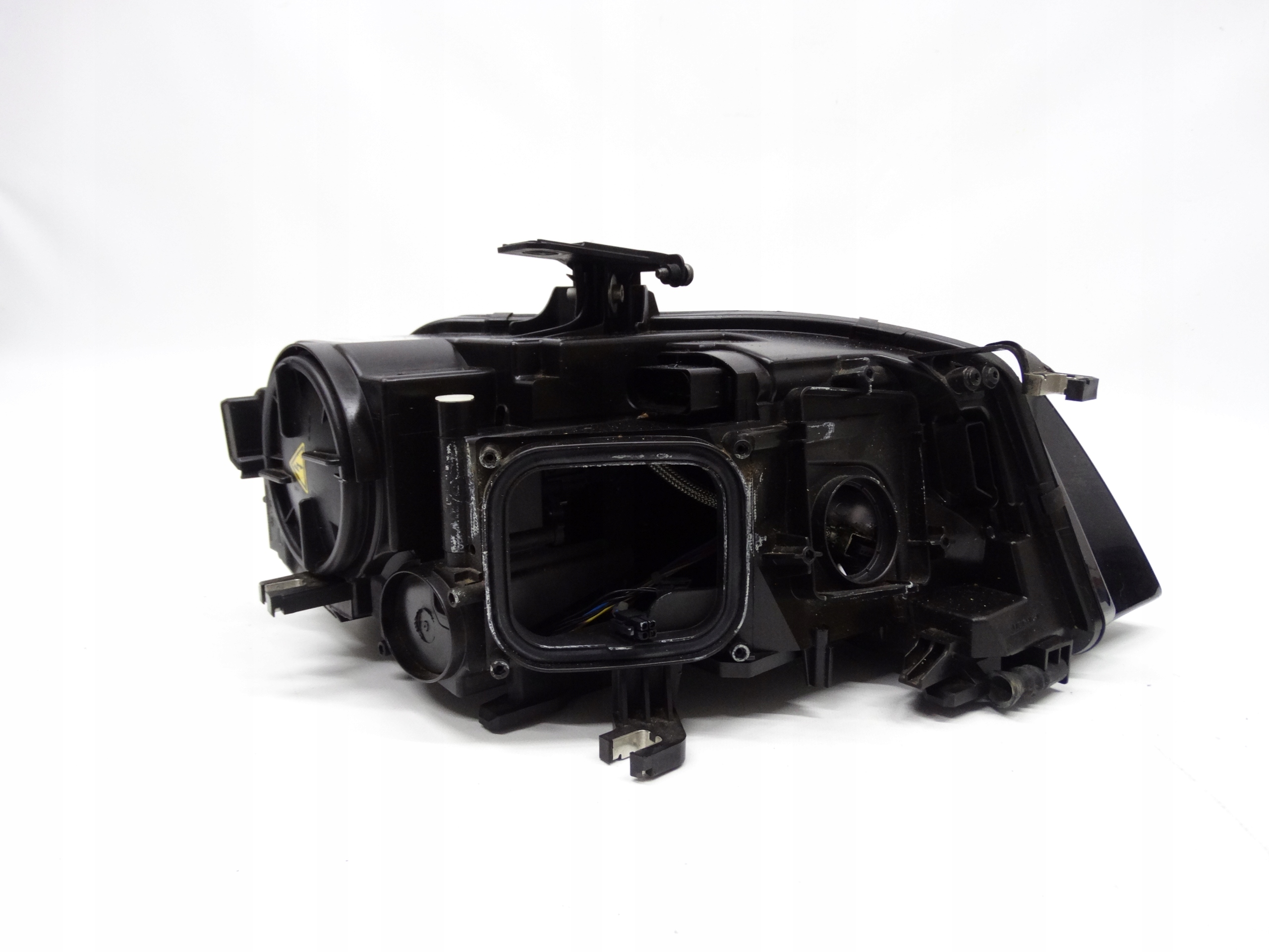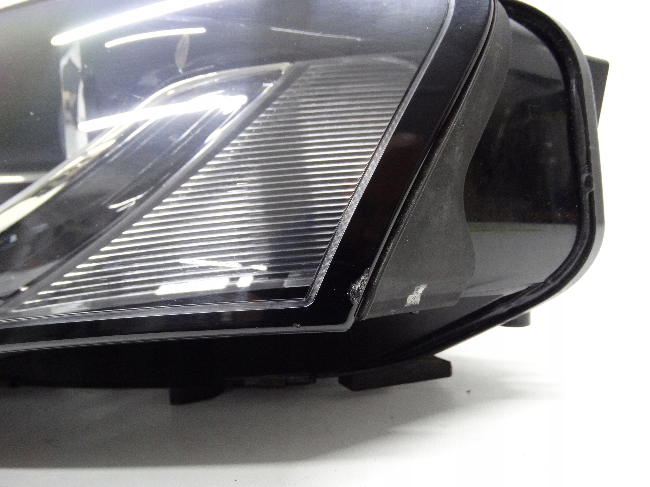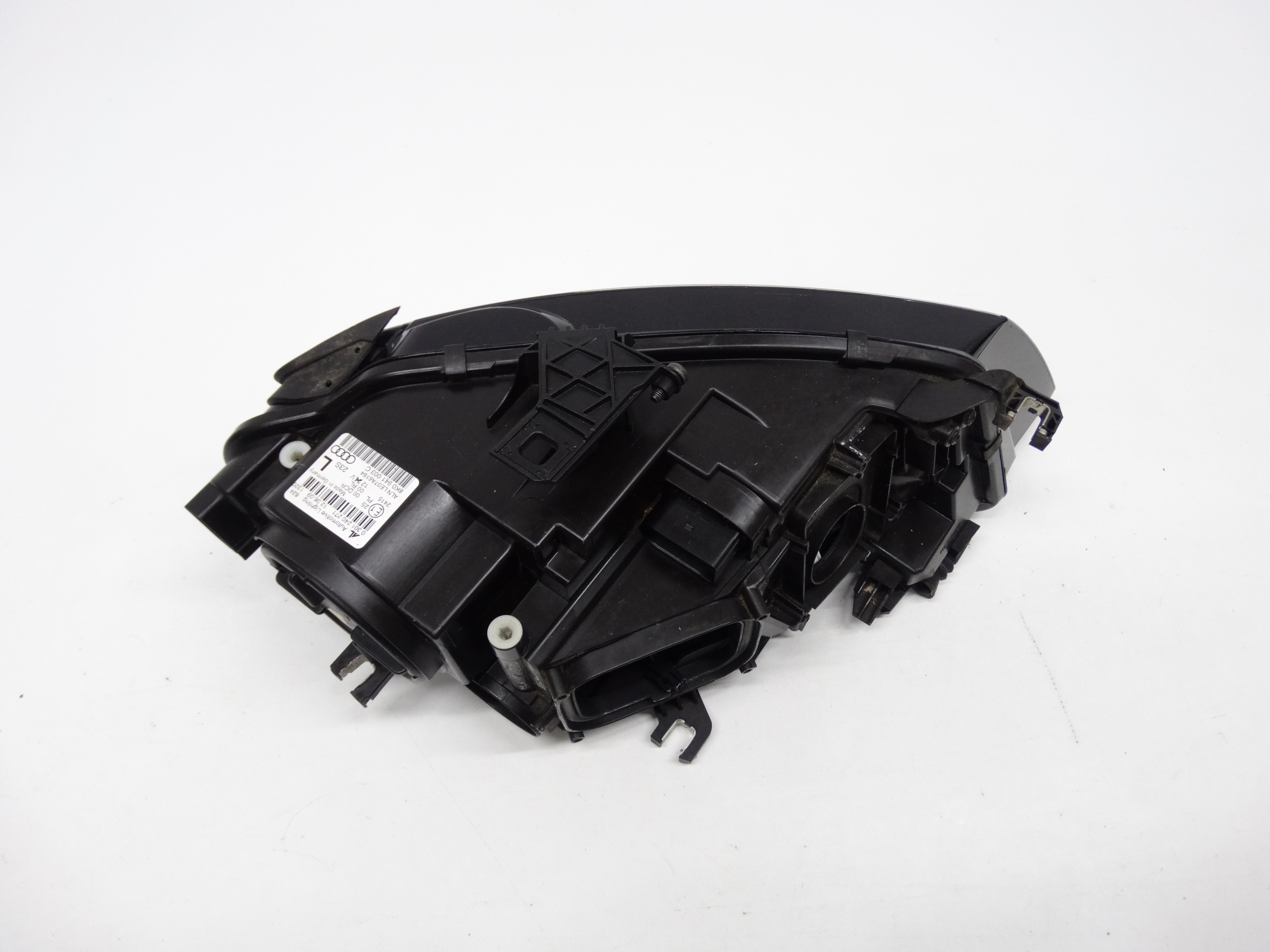 Oferujemy oryginalną przednią lewą lampę Bi-Xenon nieskrętny z LEDem do Audi A4 B8 07-11. Lampa w bardzo dobrym stanie, szkło całe, bez pęknięć i wyłamań, niepolerowane, posiada niewielkie otarcie na rancie – zdjęcia nr 6 i 7. Puszka cała, bez dziur, pęknięć i wyłamań, wszystkie uchwyty całe, oryginalne, nienaprawiane. Wersja europejska.