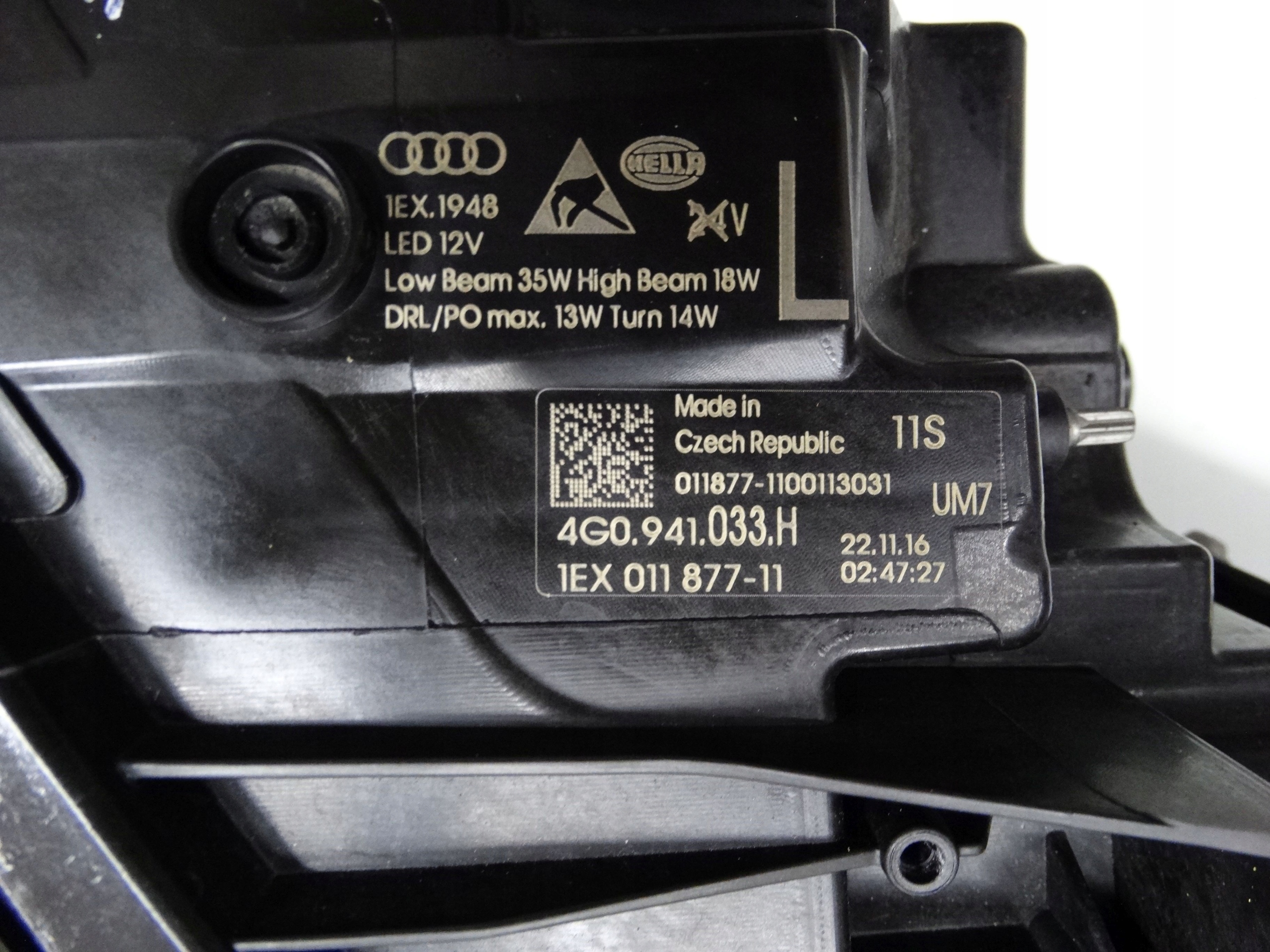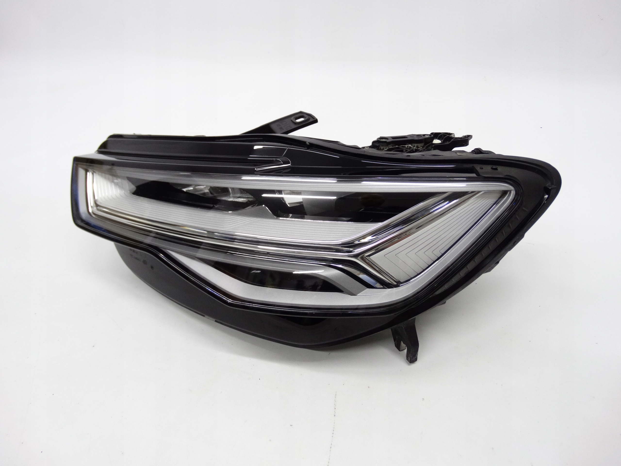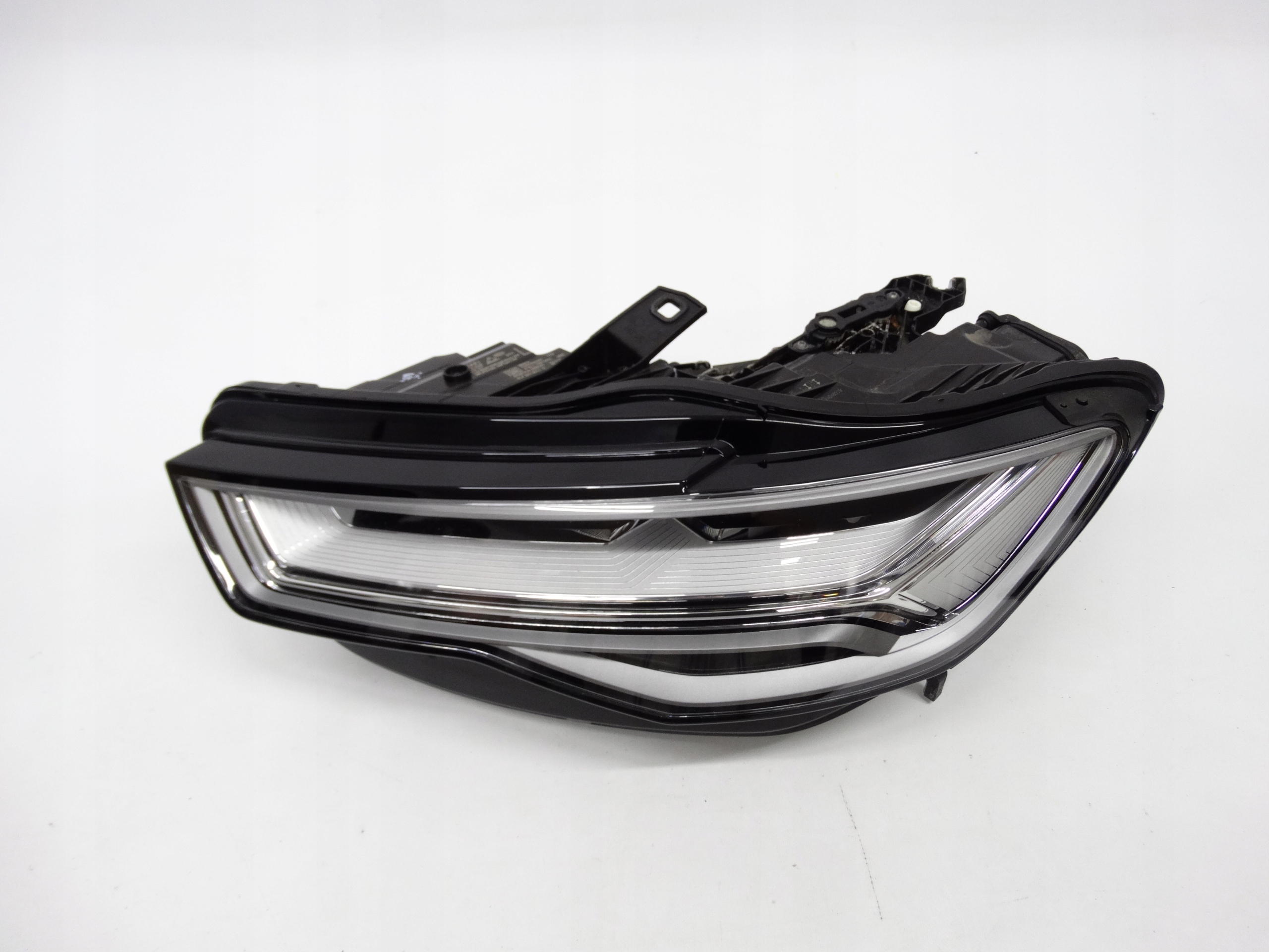 Oferujemy oryginalną przednią lewą lampę Full LED do Audi A6 C7 Lift 4G 14-18. Lampa cała, nienaprawiana, w bardzo dobrym stanie. Szkło całe, bez dziur, niepolerowane – posiada mały uszczerbek przy rancie (zdjęcie nr 9, 10 i 11) – nie ma wpływu na szczelność, mocowanie czy funkcjonalność lampy. Puszka cała, bez dziur, pęknięć i wyłamań, wszystkie uchwyty całe, oryginalne, nienaprawiane. Wersja europejska.