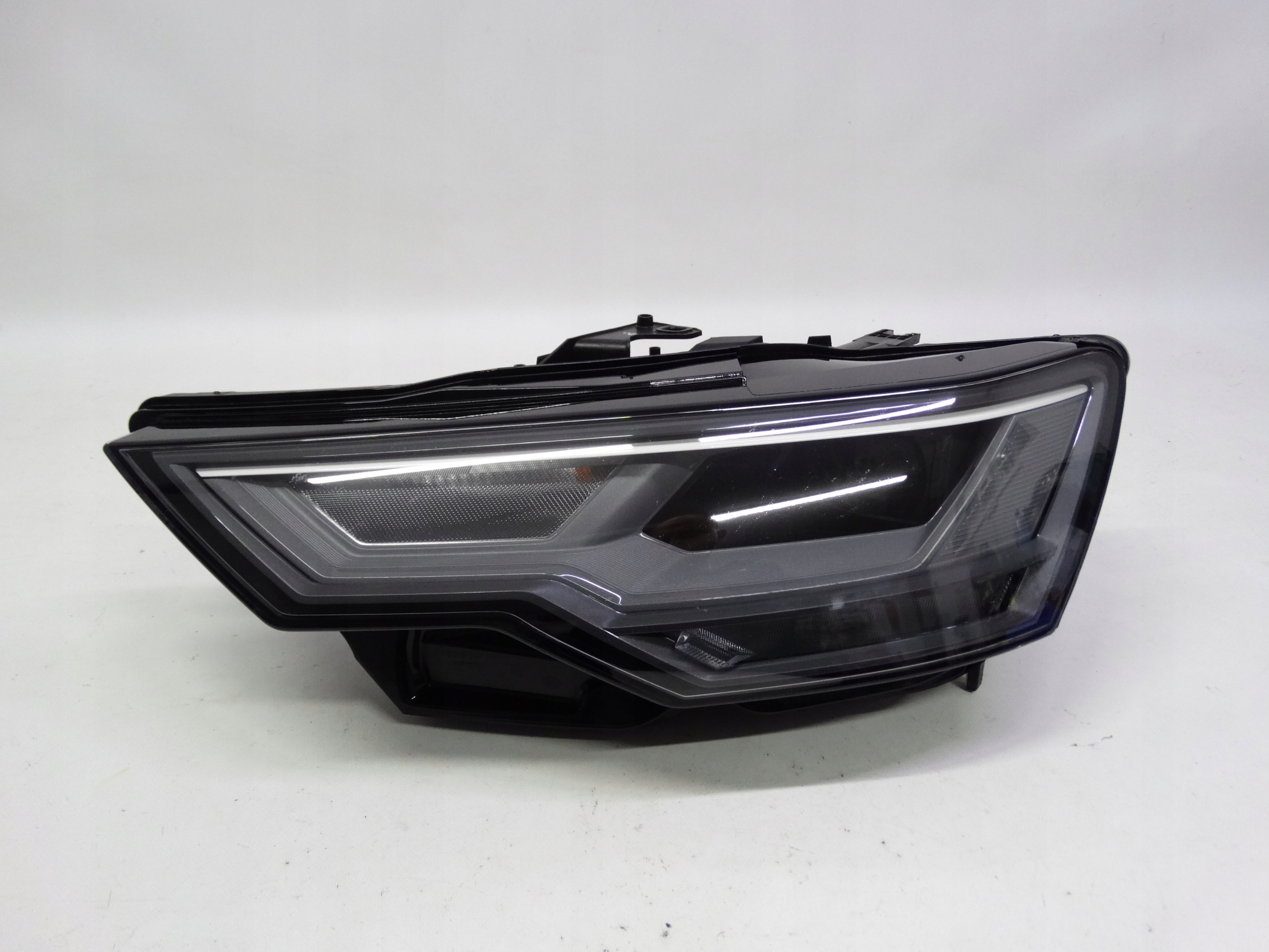 Oferujemy oryginalną przednią lewą lampę Full LED do Audi A6 C8 4K 2018-2024. Lampa cała, nienaprawiana, w bardzo dobrym stanie. Szkło całe, bez dziur i wyłamań, niepolerowane. Puszka cała, bez dziur, pęknięć i wyłamań, wszystkie uchwyty całe, oryginalne, nienaprawiane. Wersja europejska.