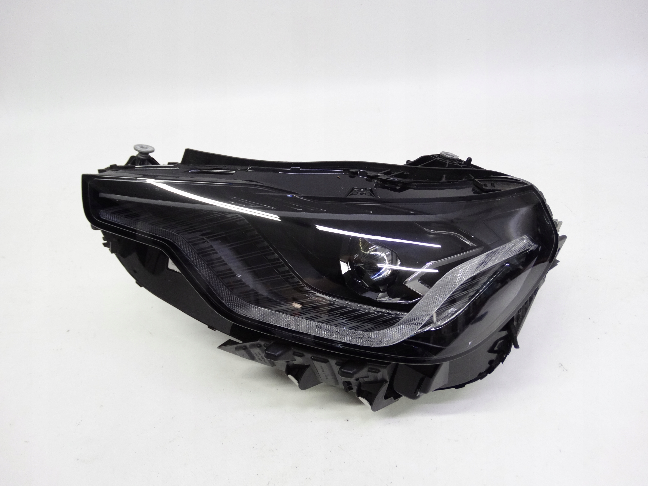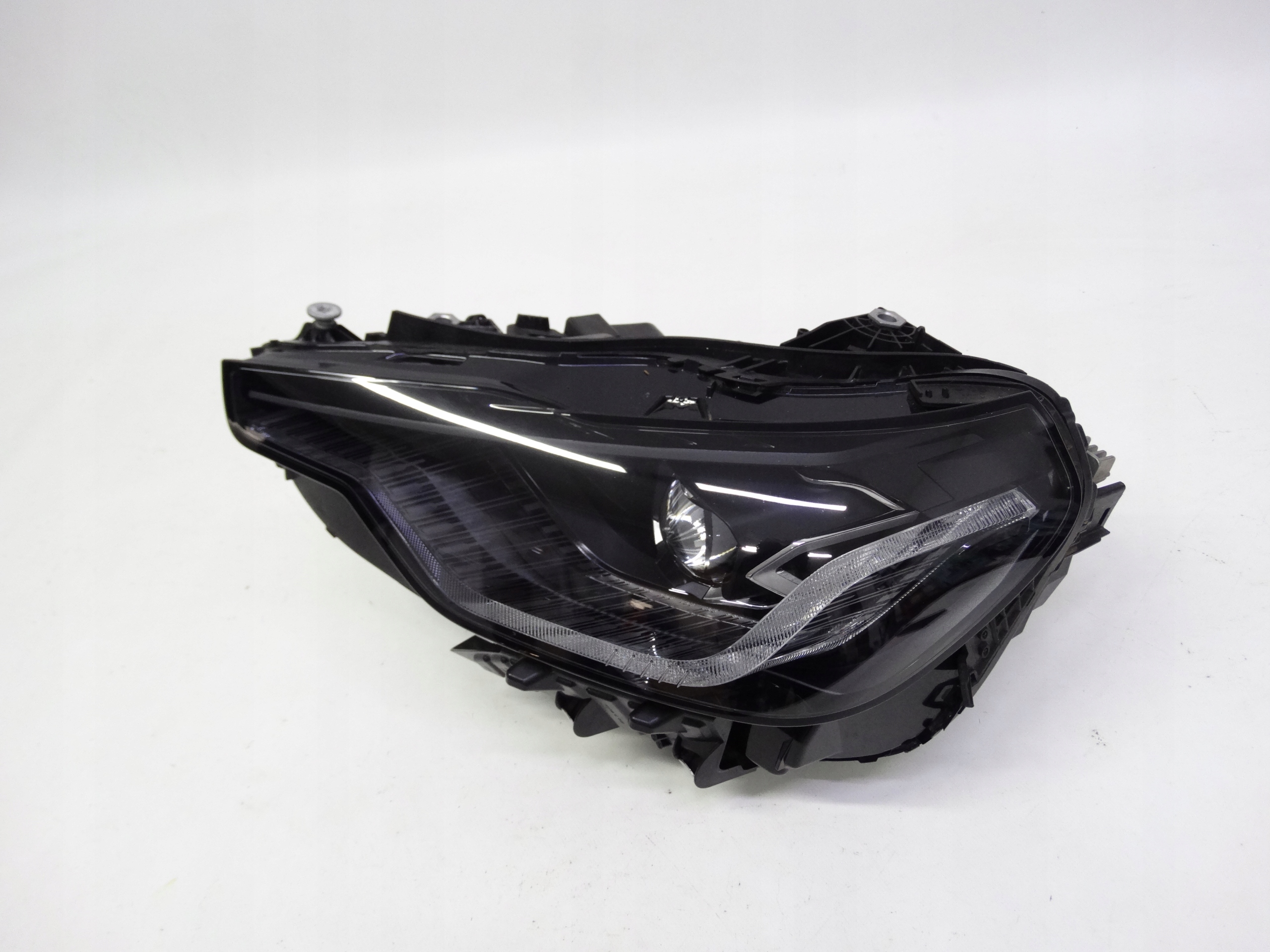 Oferujemy oryginalną przednią lewą lampę Full LED do BMW M2 G87 / serii 2 G42 2022+ wersja Shadow Line. Lampa cała, w bardzo dobrym stanie. Szkło całe, bez dziur, pęknięć i wyłamań, niepolerowane, malutkie pęknięcie przy rancie naprawione – zdjęcie nr 6, 7 i 8. Puszka cała, bez dziur, pęknięć i wyłamań, wszystkie uchwyty całe, oryginalne, nienaprawiane. Wersja europejska.