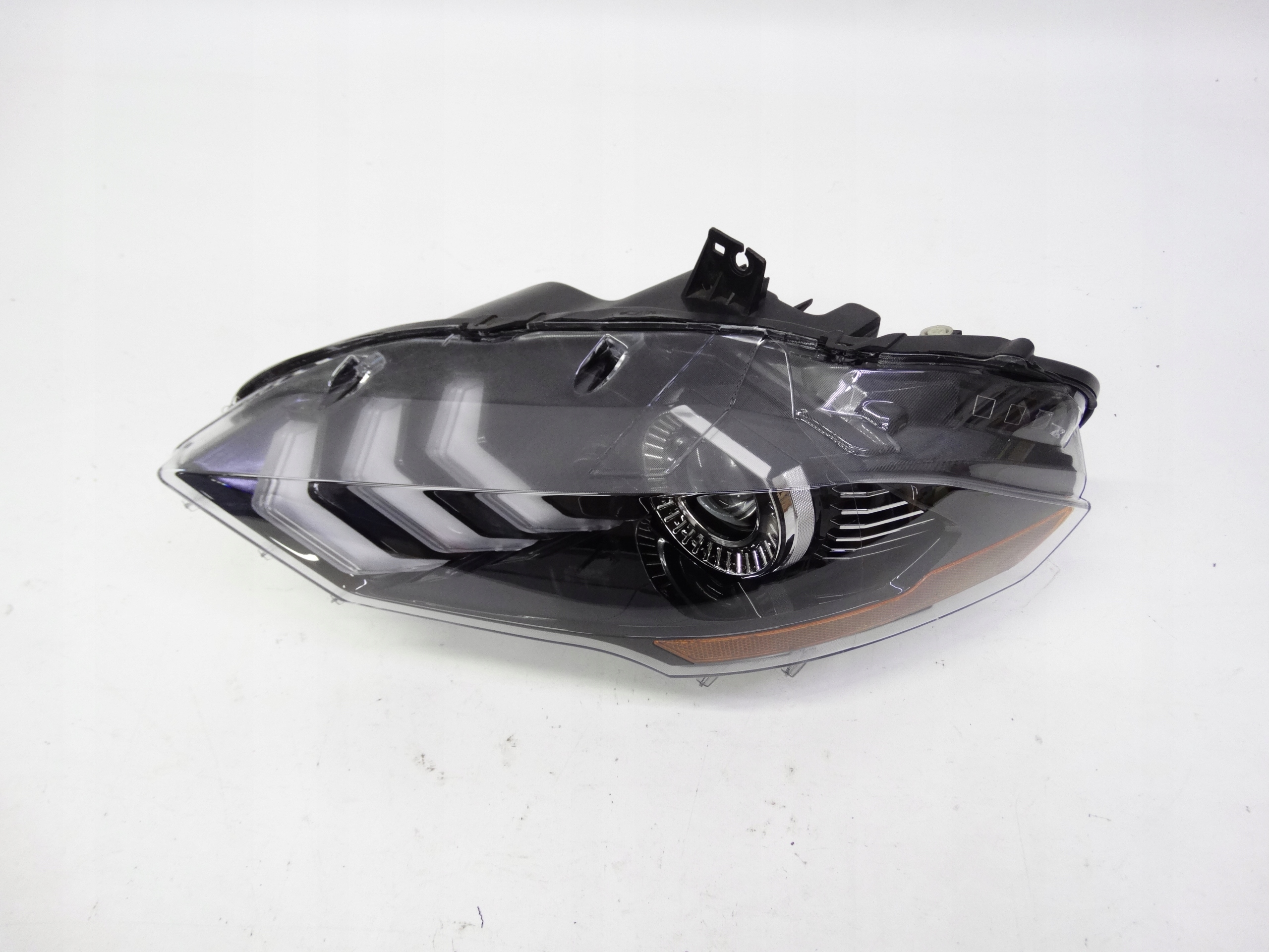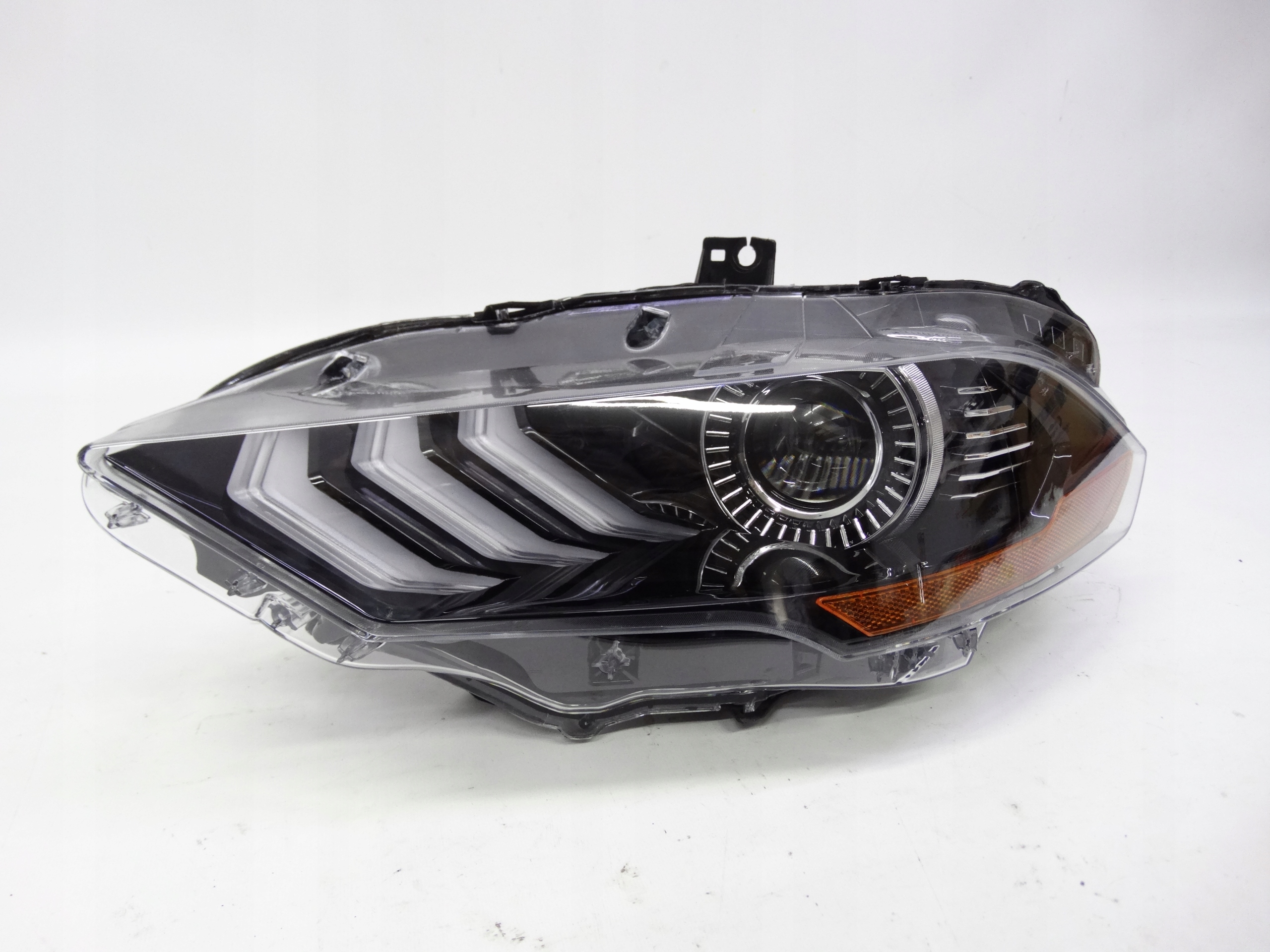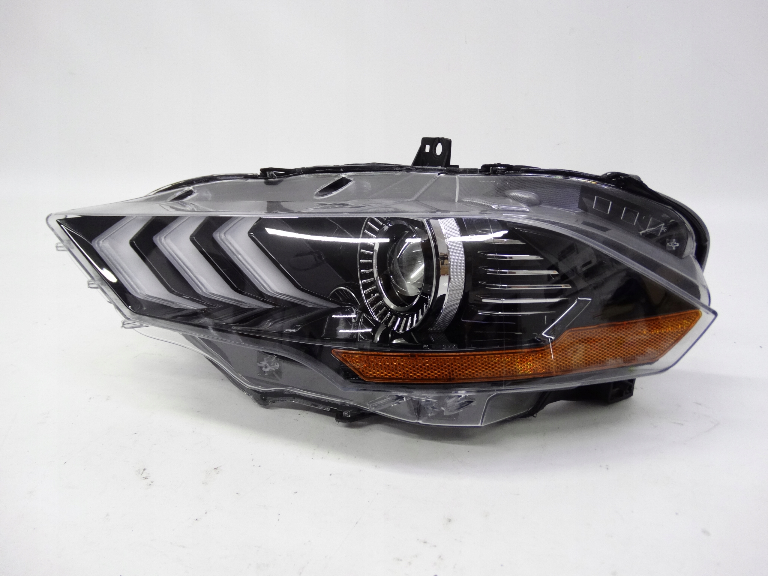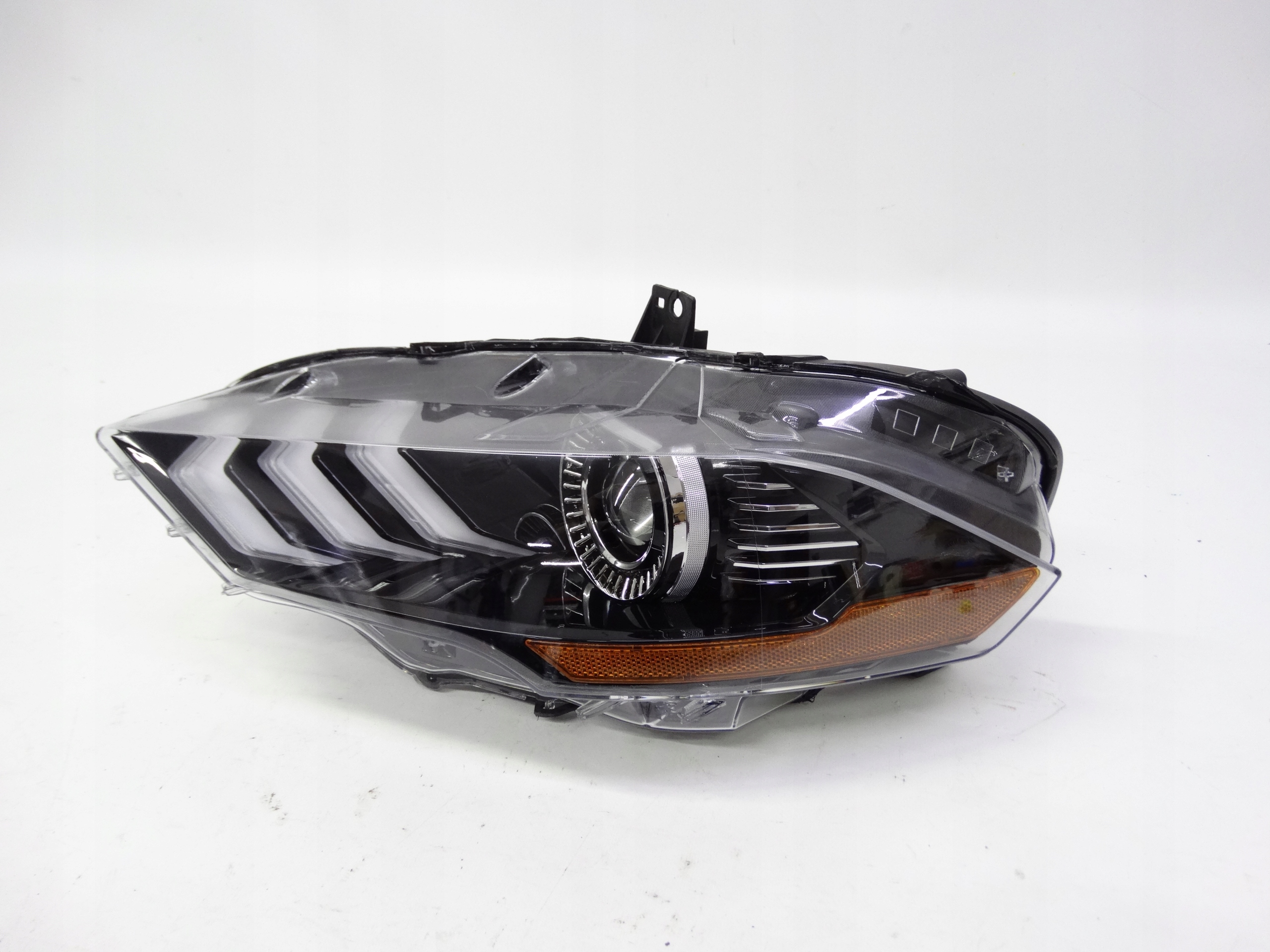 Oferujemy przednią lewą lampę Full LED zamiennik oryginału w wersji USA do Ford Mustang VI Lift 2017-2023. Lampa praktycznie w idealnym stanie, cała, bez uszkodzeń, nienaprawiana. Szkło całe, bez dziur, pęknięć i wyłamań, niepolerowane. Puszka cała, bez dziur, pęknięć i wyłamań, wszystkie uchwyty całe, oryginalne, nienaprawiane. Wersja amerykańska.