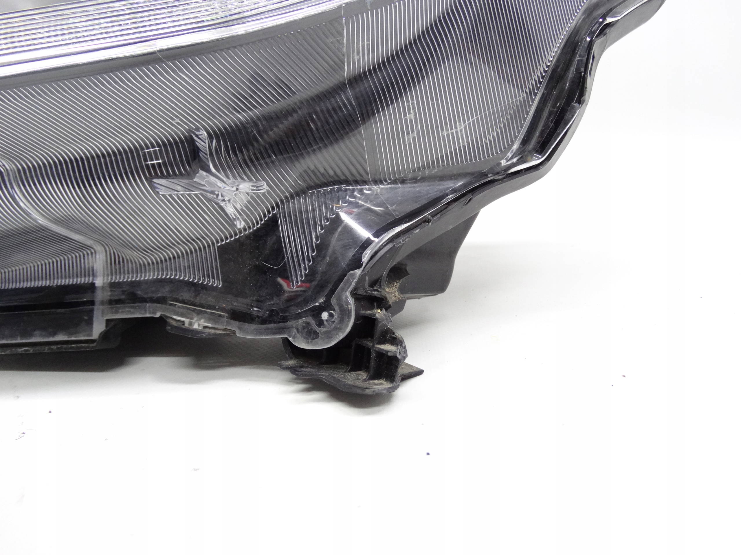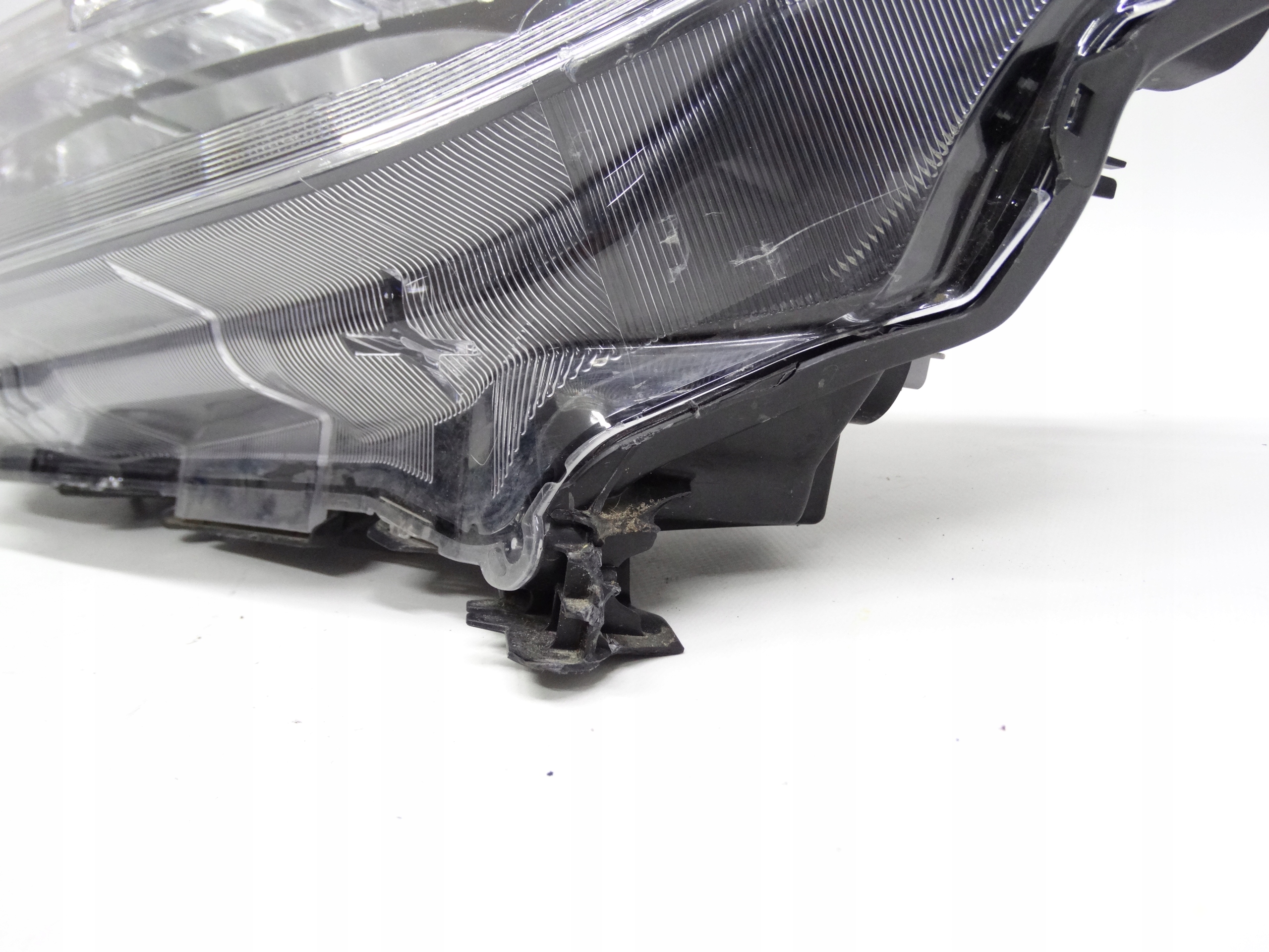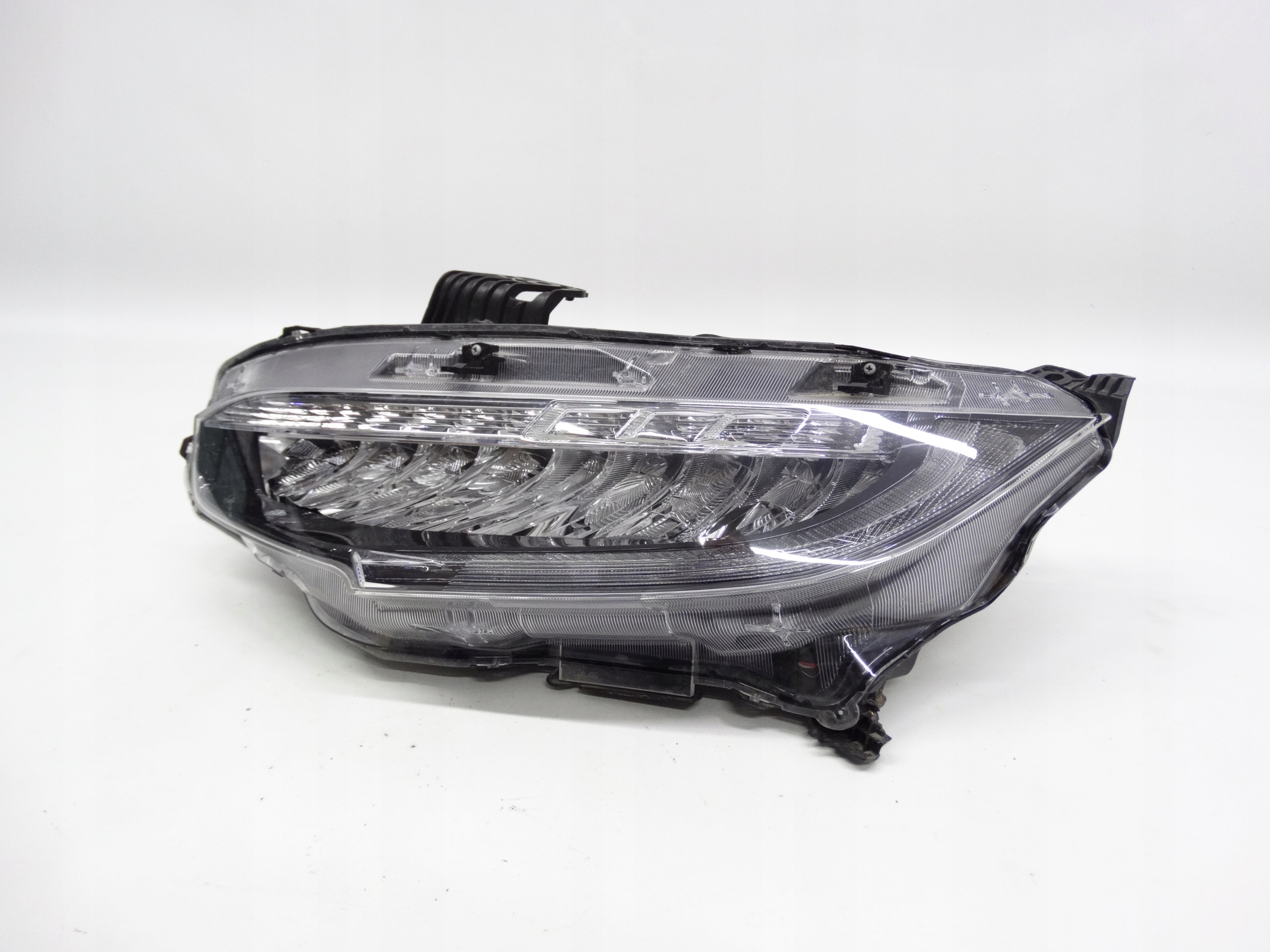 Oferujemy oryginalną przednią lewą lampę Full LED do Honda Civic X 2017-2021. Lampa cała, nienaprawiana, w bardzo dobrym stanie. Szkło bez dziur i braków, niepolerowane, posiada niewielkie uszkodzenie w dolnej części – zdjęcie nr 7. Puszka cała, bez dziur, pęknięć i wyłamań, jeden dolny uchwyt uszkodzony – zdjęcie nr 8 i 9. Wersja europejska.
