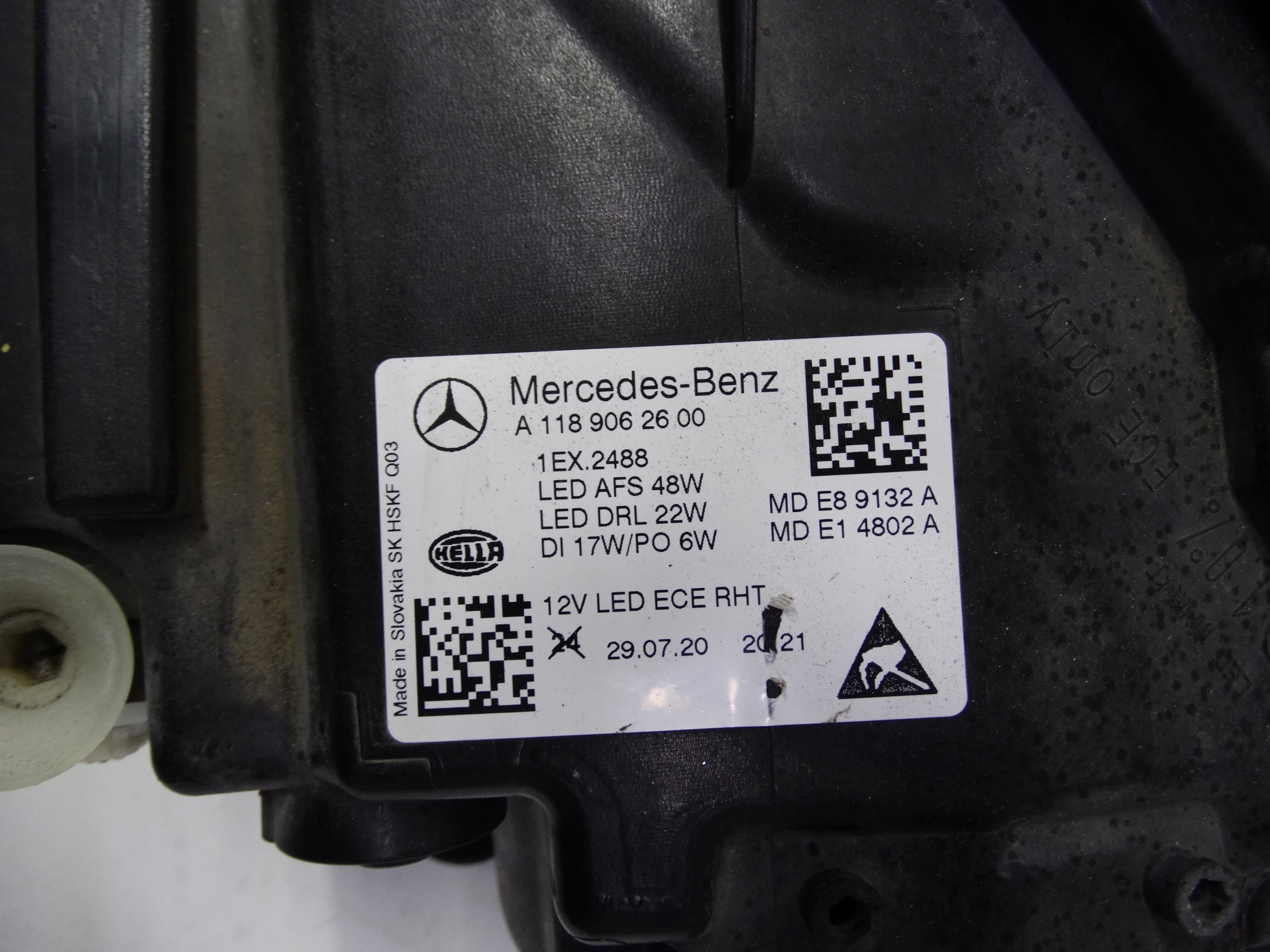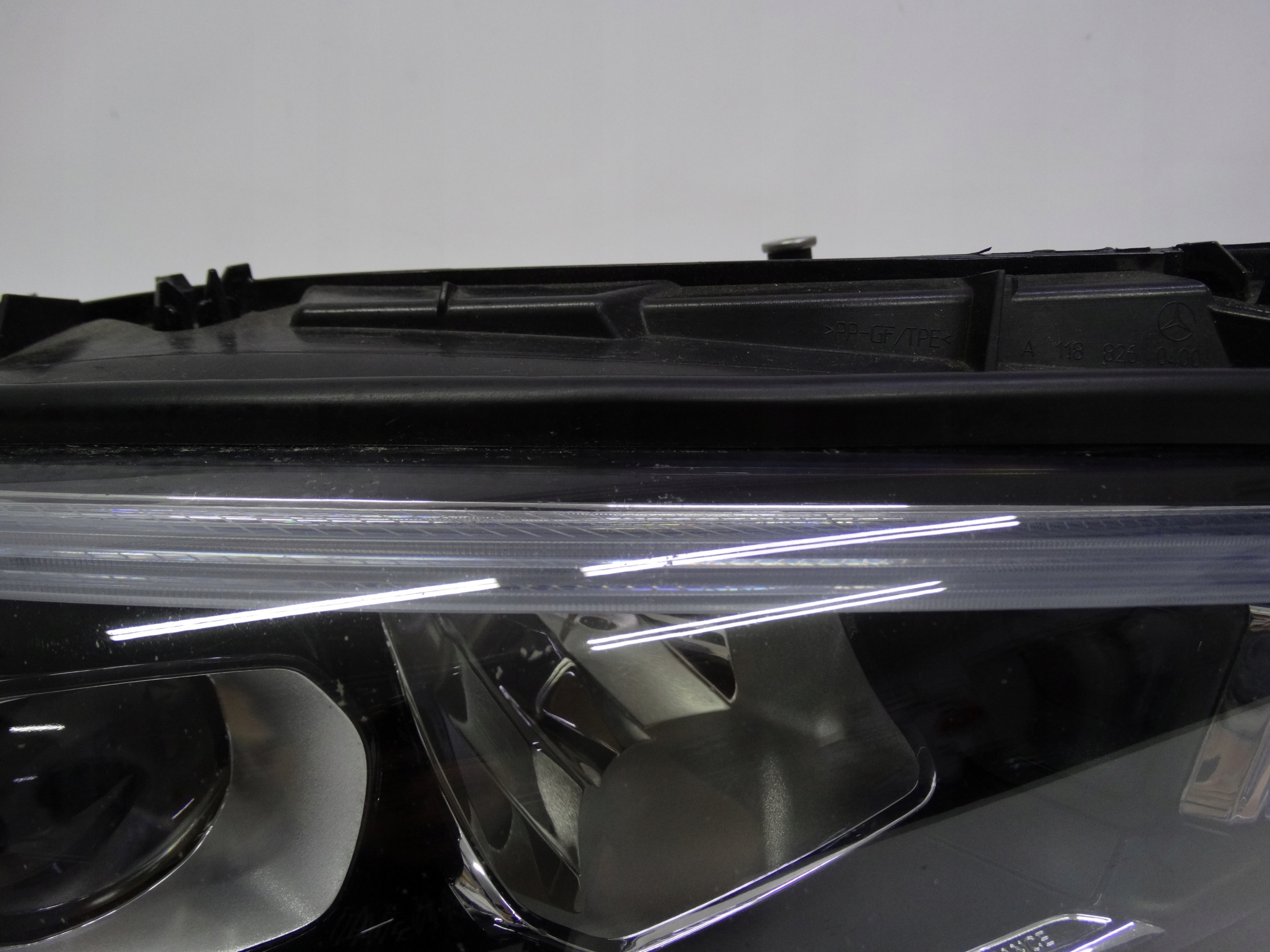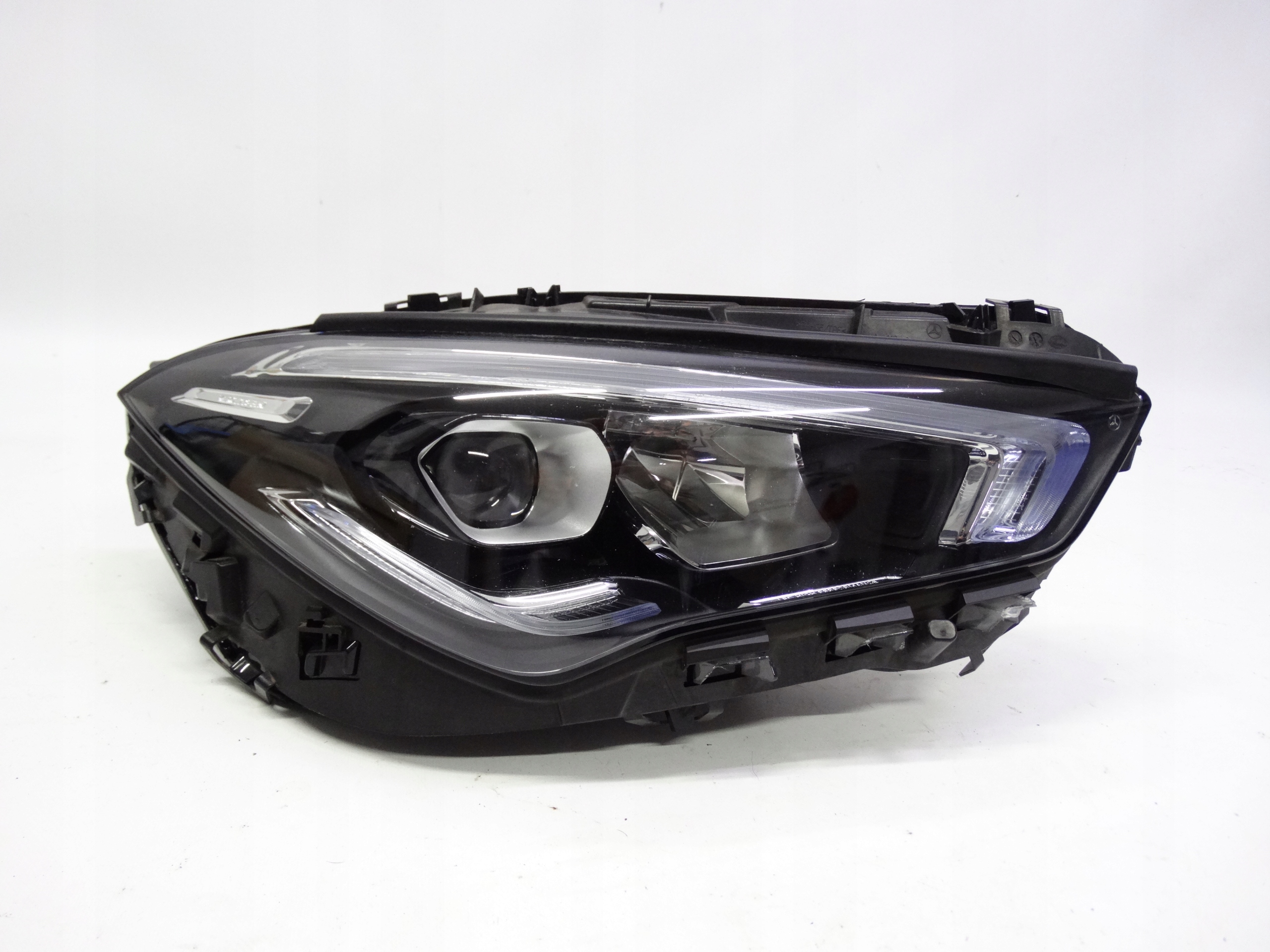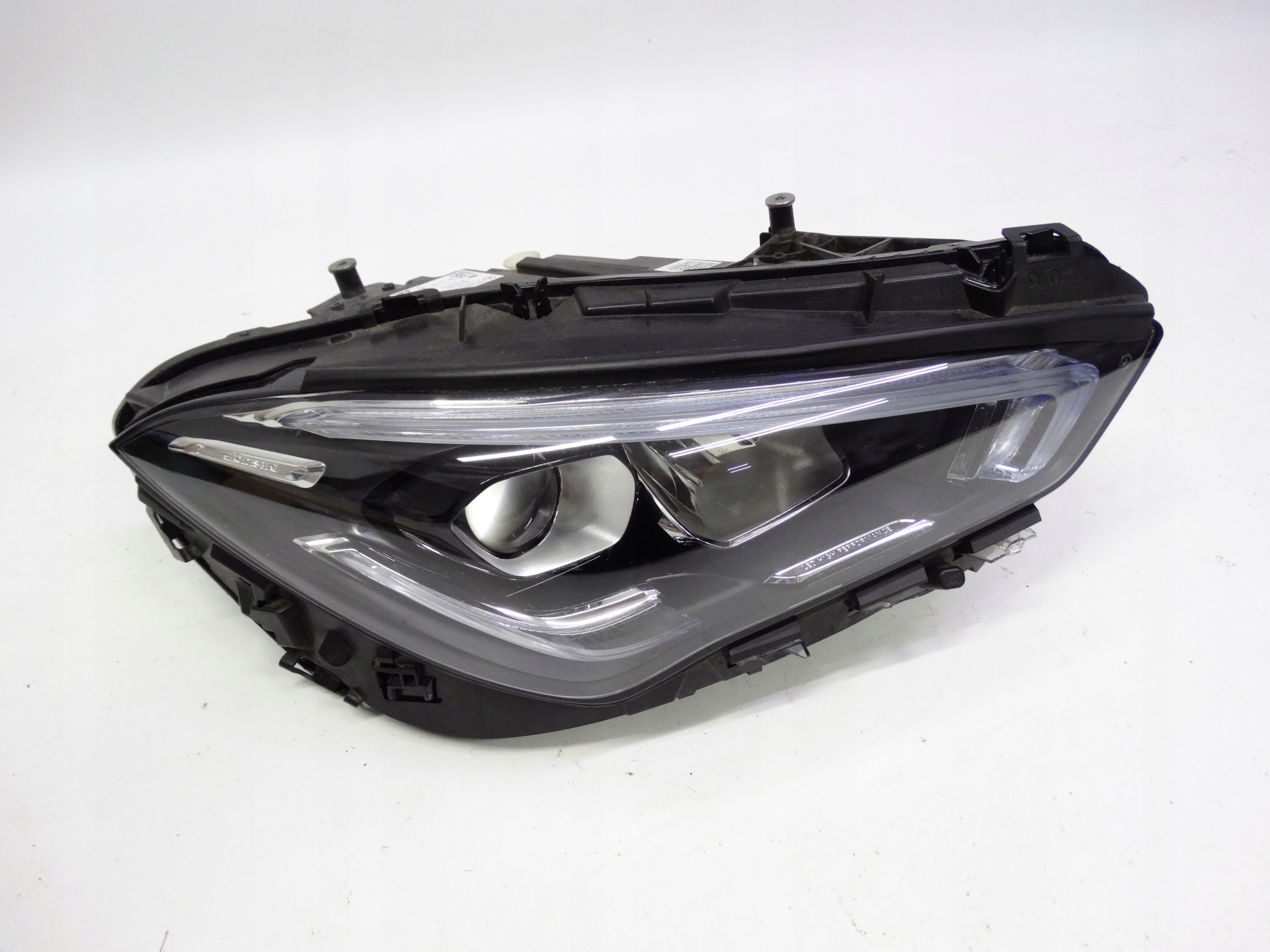 Oferujemy oryginalną przednią prawą lampę Full LED High Performance do Mercedes CLA W118 2019-2023. Lampa cała, w bardzo dobrym stanie, nienaprawiana. Szkło całe, bez dziur, pęknięć i wyłamań, niepolerowane, posiada normalne ślady użytkowania na powierzchni – zdjęcie 6, 7 i 8, oraz delikatnie uszkodzone dolne wsuwki – zdjęcie nr 9, 10 i 11. Puszka cała, bez dziur, pęknięć i wyłamań, wszystkie uchwyty całe, oryginalne, nienaprawiane. Wersja europejska.