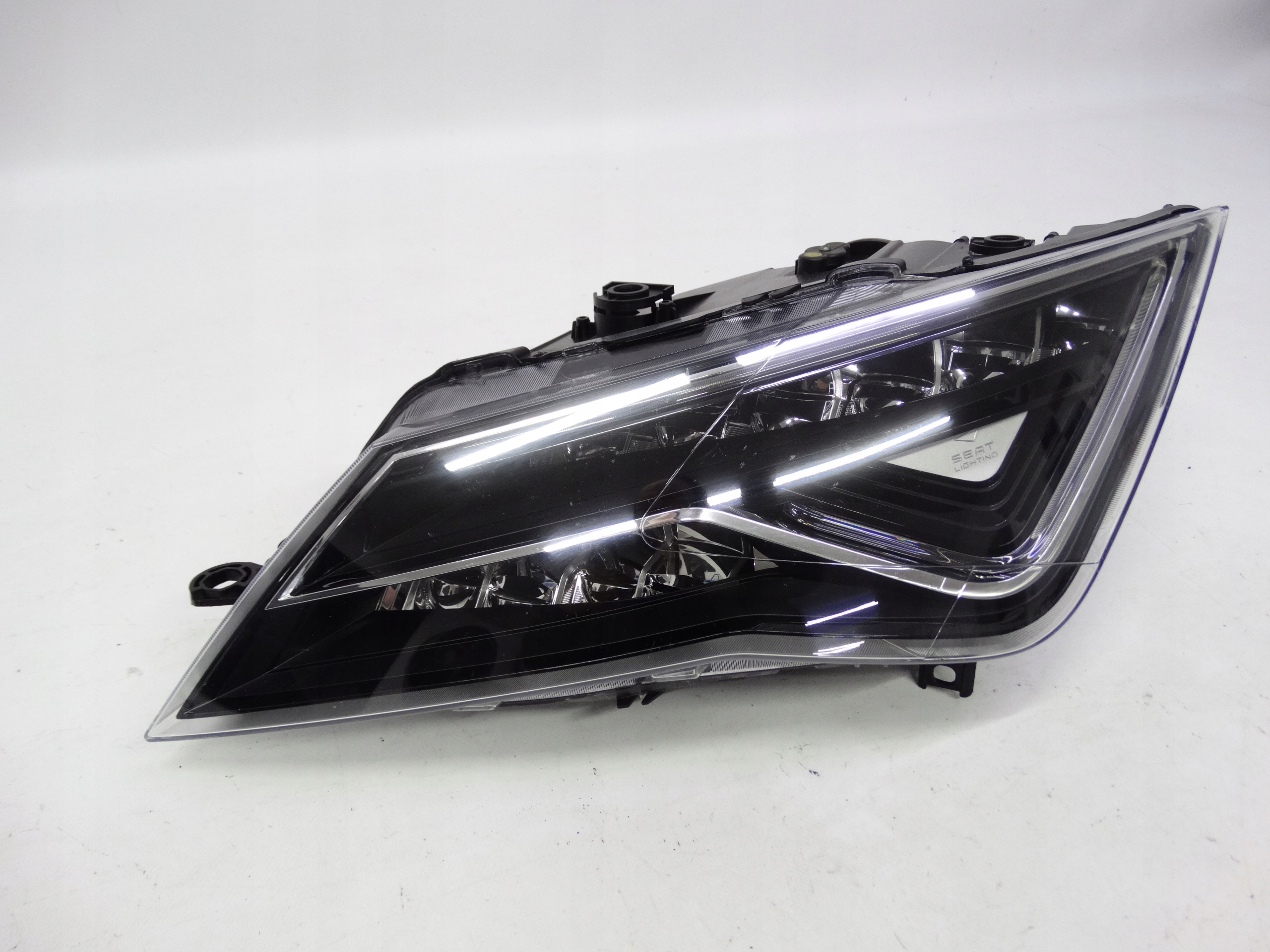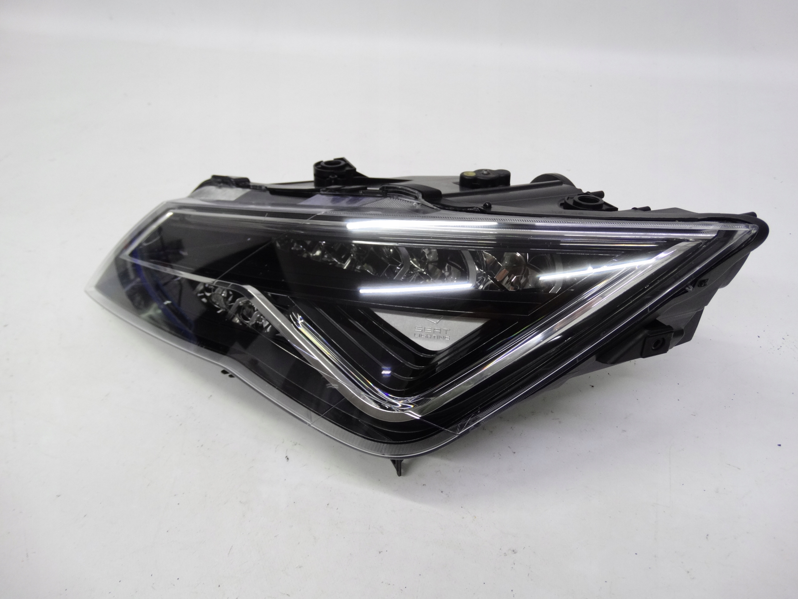 Oferujemy oryginalną przednią lewą lampę Full LED do Seat Leon III Lift 2016-2020. Lampa cała, w bardzo dobrym stanie. Szkło całe, bez dziur, pęknięć i wyłamań, niepolerowane. Lampa ma założoną nową puszkę – w idealnym stanie, bez dziur, pęknięć i wyłamań wszystkie uchwyty całe, nienaprawiane. Wersja europejska.