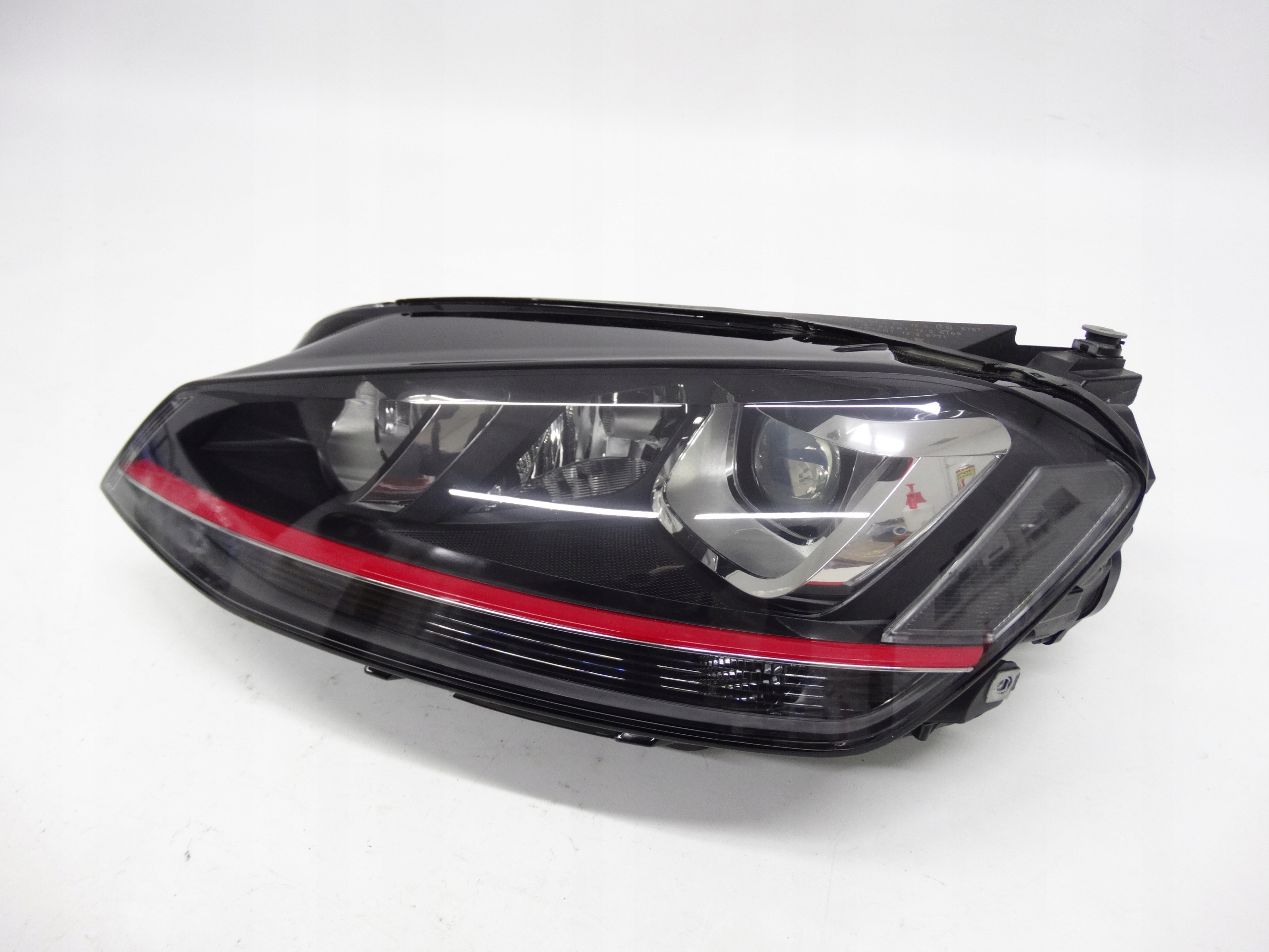 Oferujemy oryginalną przednią lewą lampę Xenon nieskrętny do VW Golf VII GTI 5G 2012-2016. Lampa cała, nienaprawiana, w bardzo dobrym stanie. Szkło całe, bez dziur, pęknięć i wyłamań, niepolerowane, posiada drobną ryskę – zdjęcie nr 6 i 7. Puszka cała, bez dziur, pęknięć i wyłamań, wszystkie uchwyty całe, oryginalne, nienaprawiane. Wersja europejska.