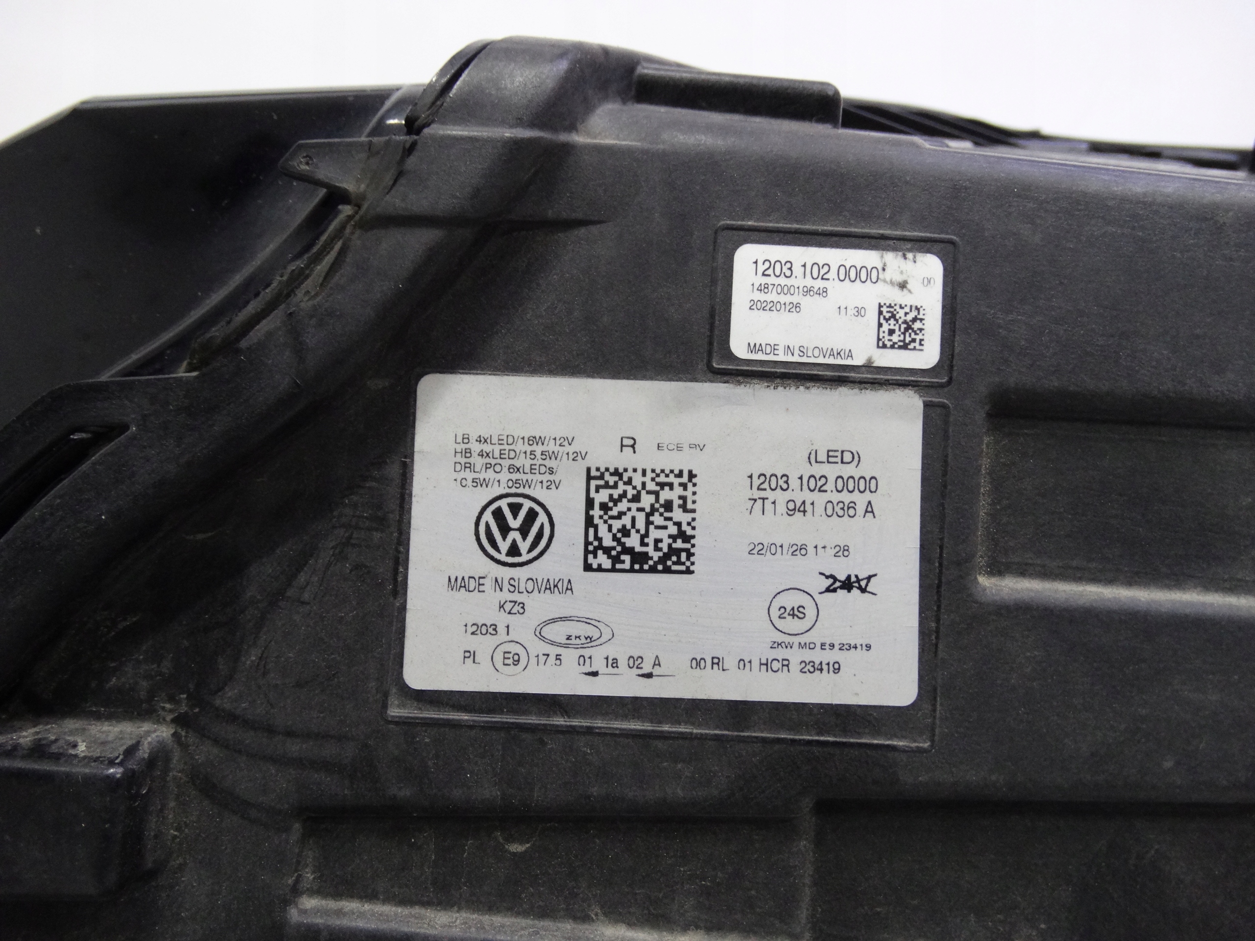 Oferujemy oryginalną przednią prawą lampę Full LED do VW T7 Multivan / Transporter 2022+. Lampa w bardzo dobrym stanie, cała, nienaprawiana. Szkło całe, bez dziur, pęknięć i wyłamań, niepolerowane – posiada drobne otarcie przy rancie – zdjęcie nr 7. Puszka cała, bez dziur, pęknięć i wyłamań, wszystkie uchwyty całe, oryginalne, nienaprawiane. Wersja europejska.