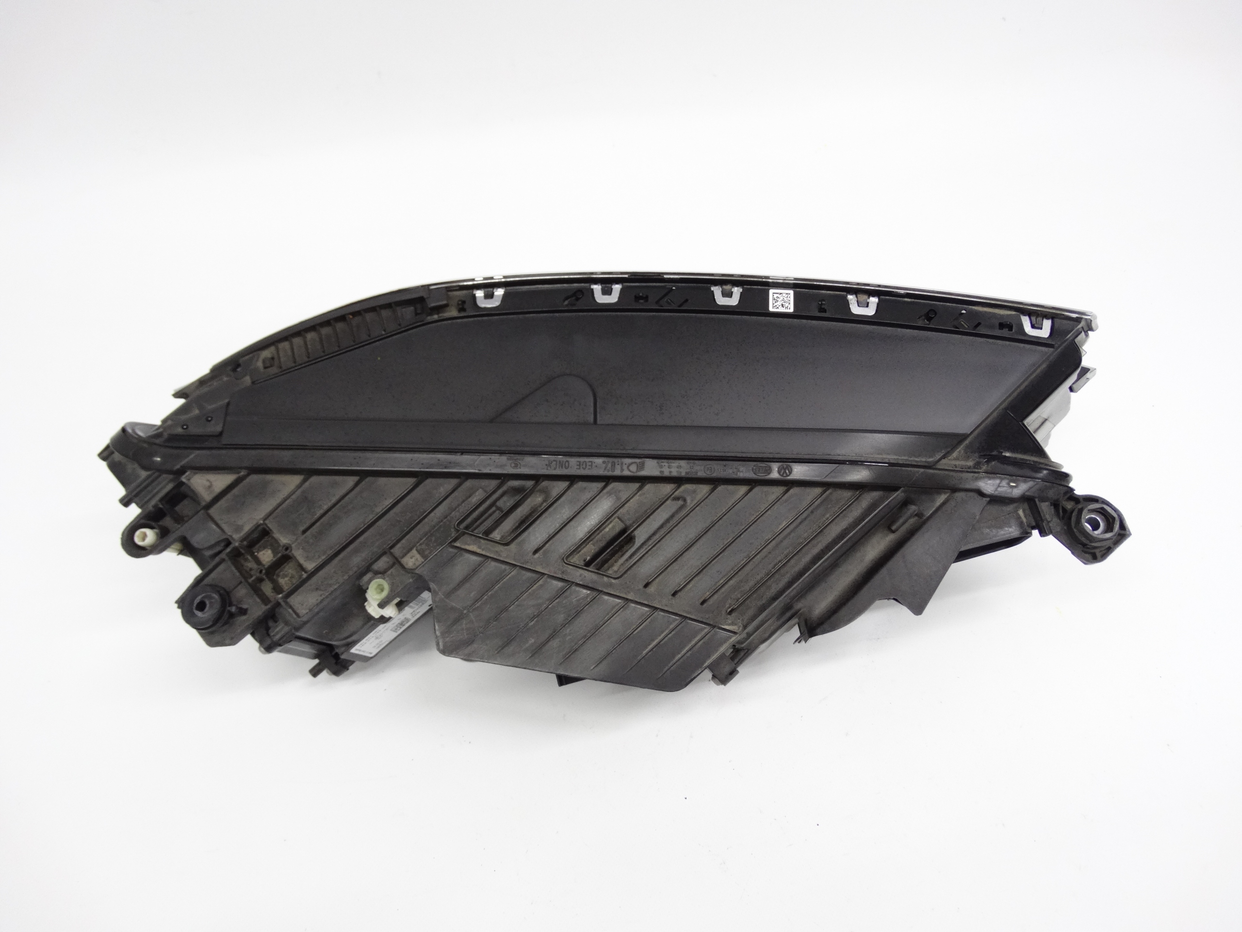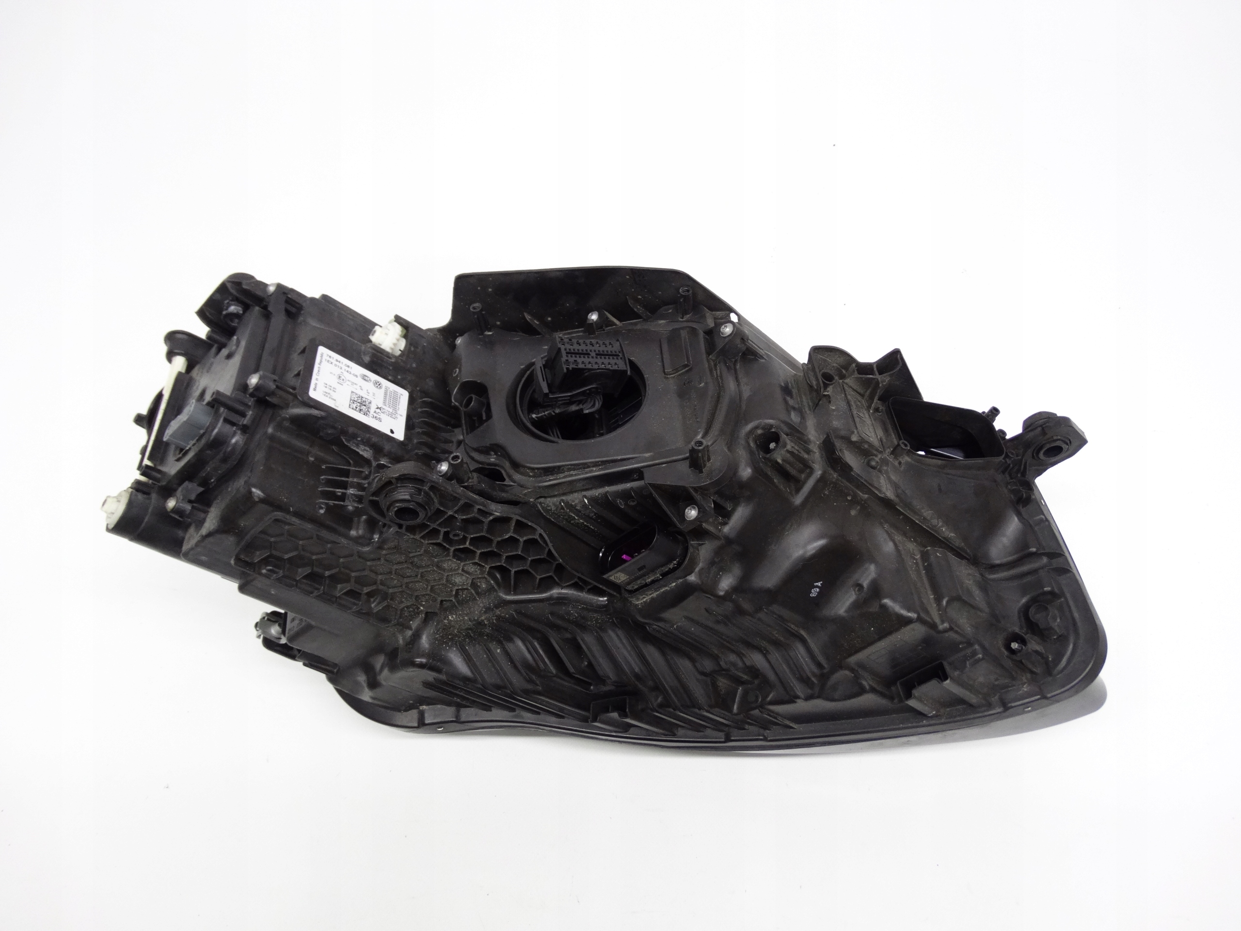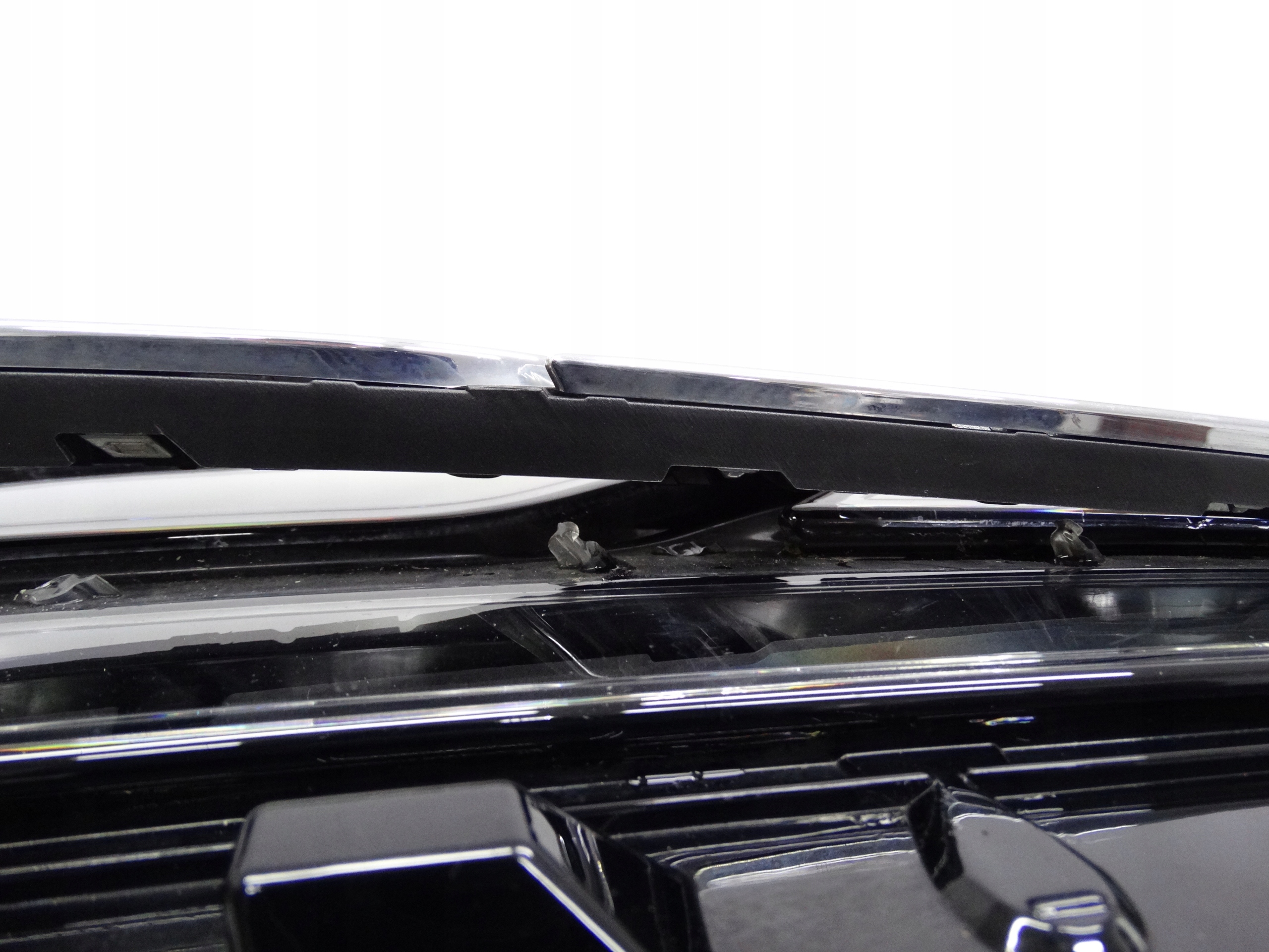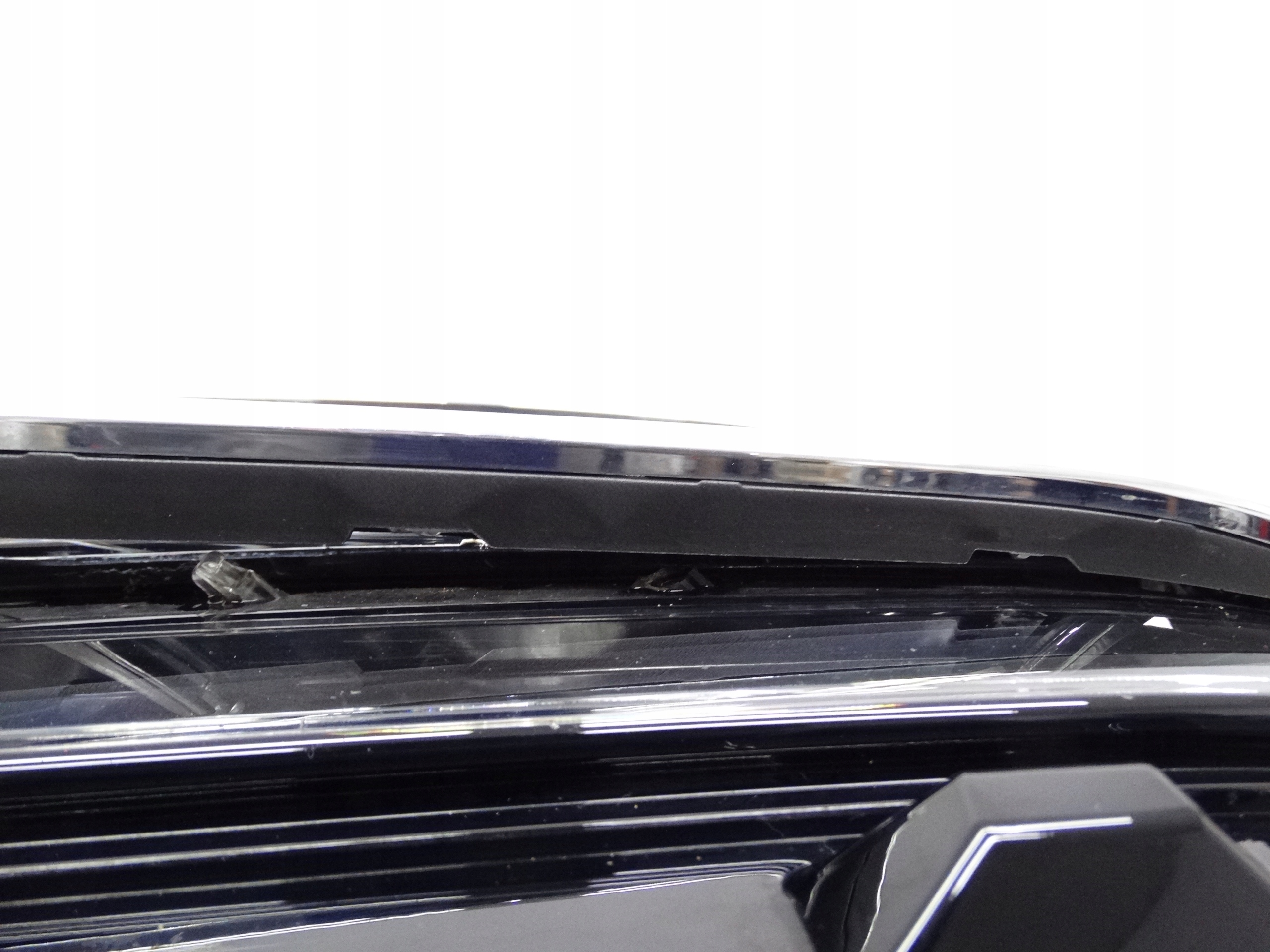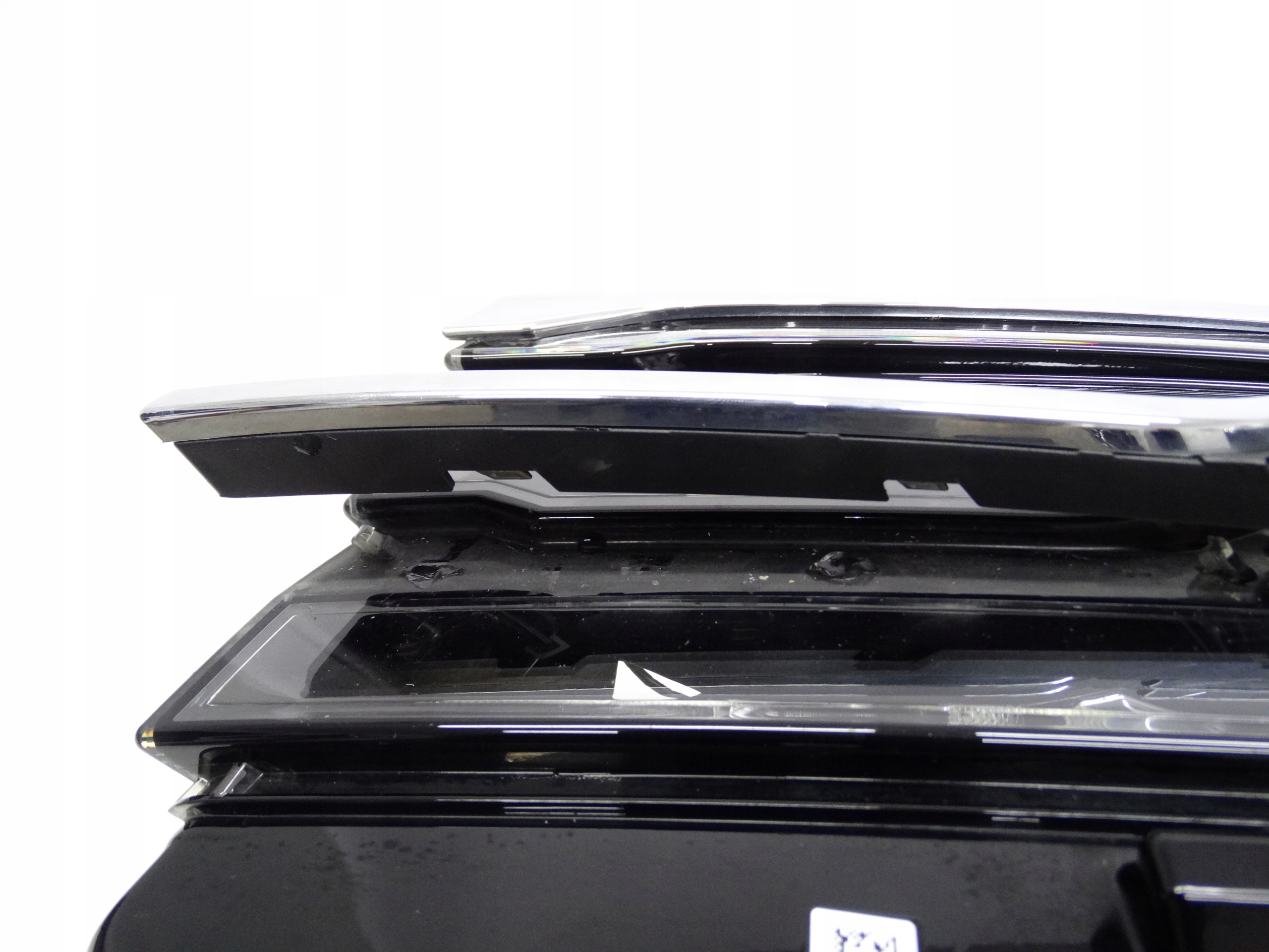Oferujemy oryginalną przednią lewą lampę Full LED do VW Touareg III 2018-2023. Lampa w bardzo dobrym stanie, nienaprawiana. Szkło i  górna blenda w bardzo dobrym stanie, posiada drobne ryski na powierzchni – zdjęcie nr 4, 5 i 6. Częściowo uszkodzone mocowania chromowanego dekoru – zdjęcie nr 7, 8 i 9. Puszka cała, bez dziur, pęknięć i wyłamań, wszystkie uchwyty całe, oryginalne, nienaprawiane. Wersja europejska.