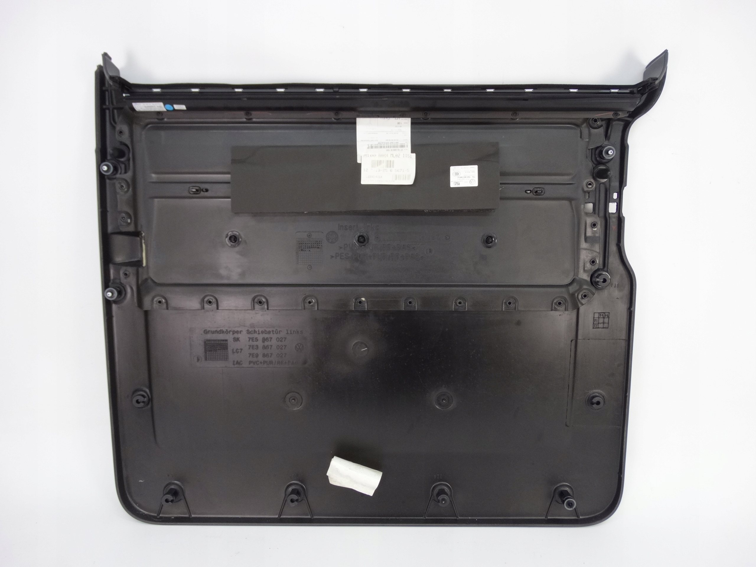 Oferujemy oryginalny boczek lewych drzwi przesuwnych do VW T6 Multivan 7E 15-22. Tapicerka w bardzo dobrym stanie, nienaprawiana, nosi normalne ślady użytkowania, stan widoczny jest na zdjęciach.