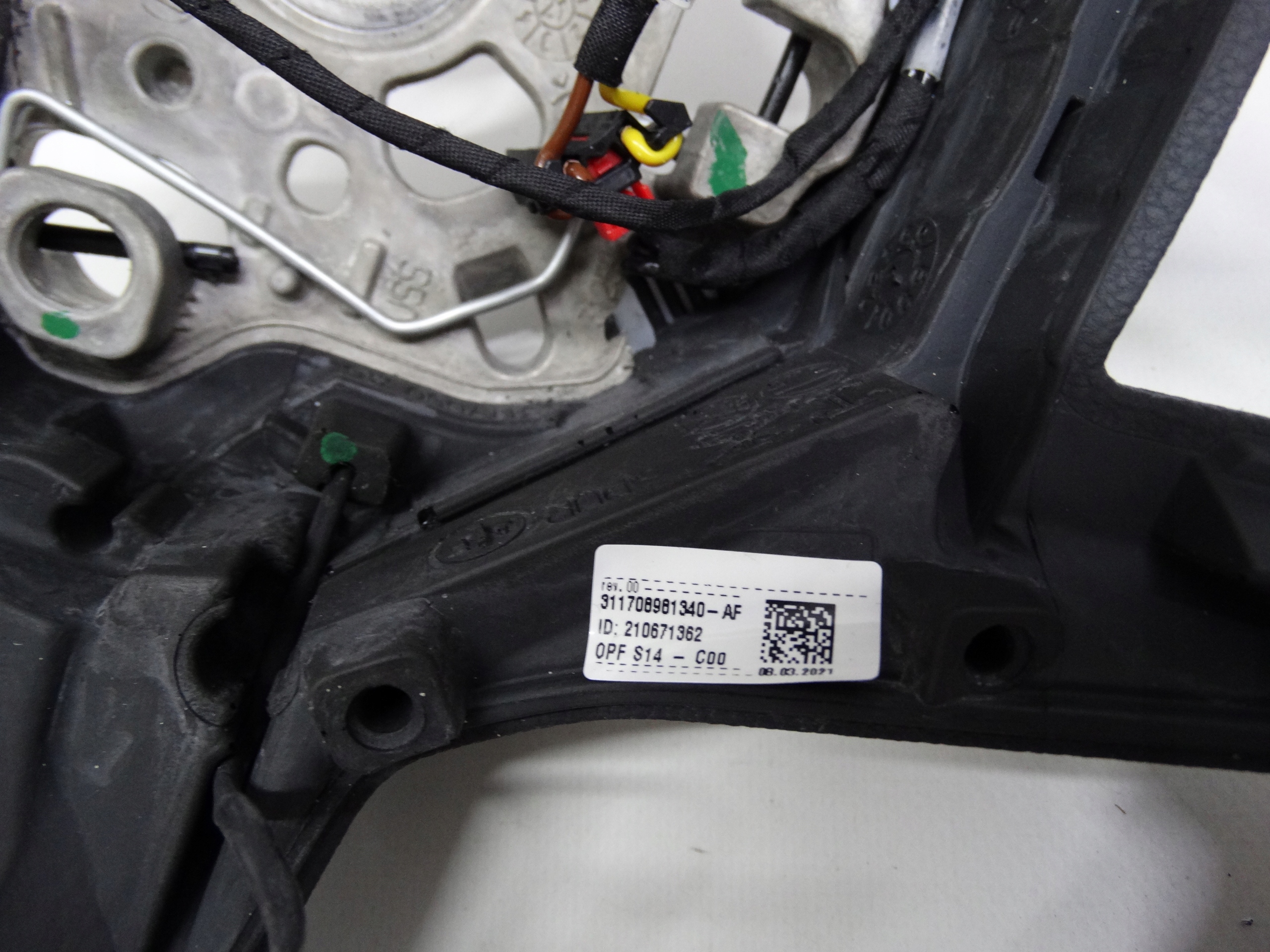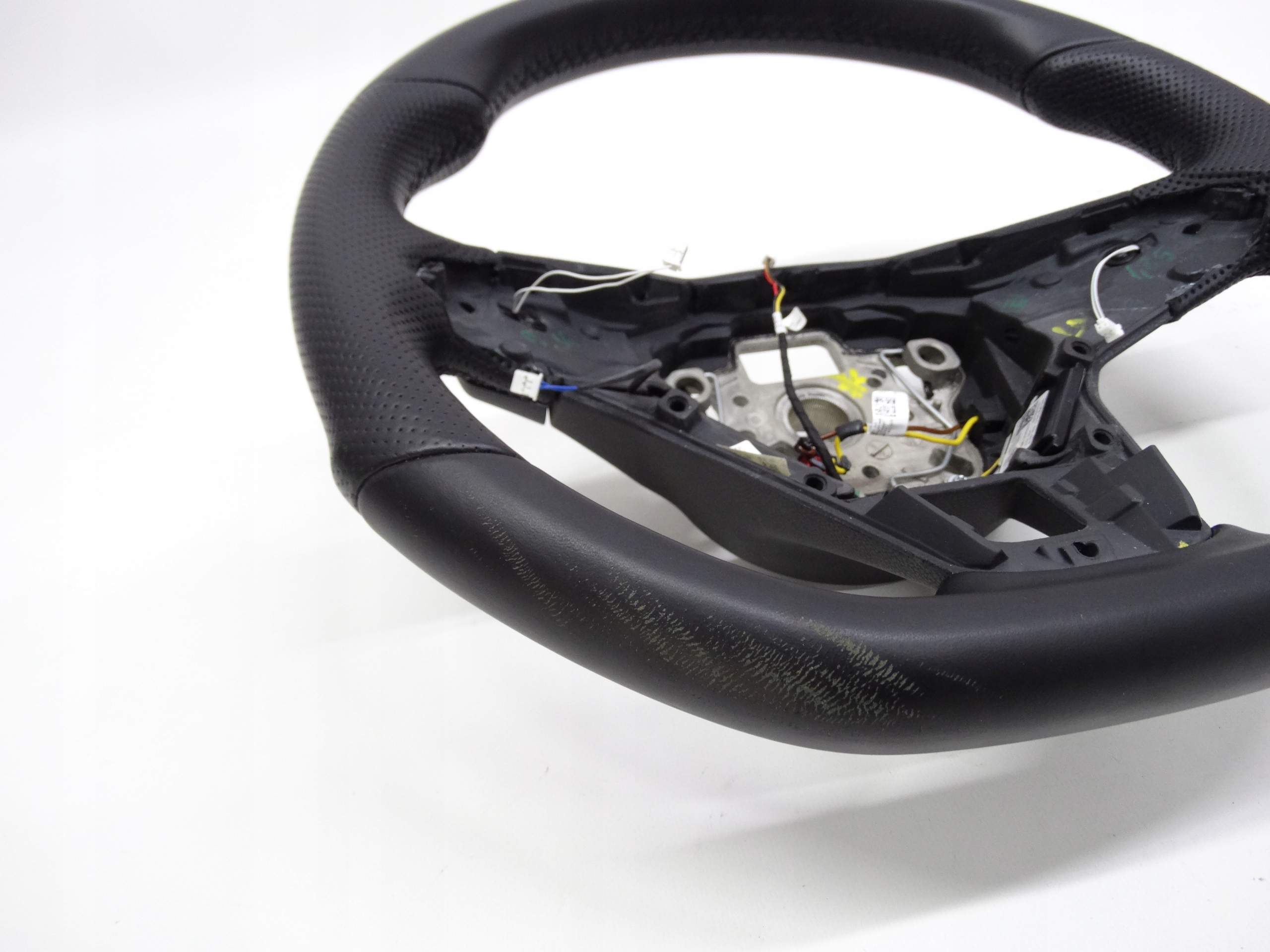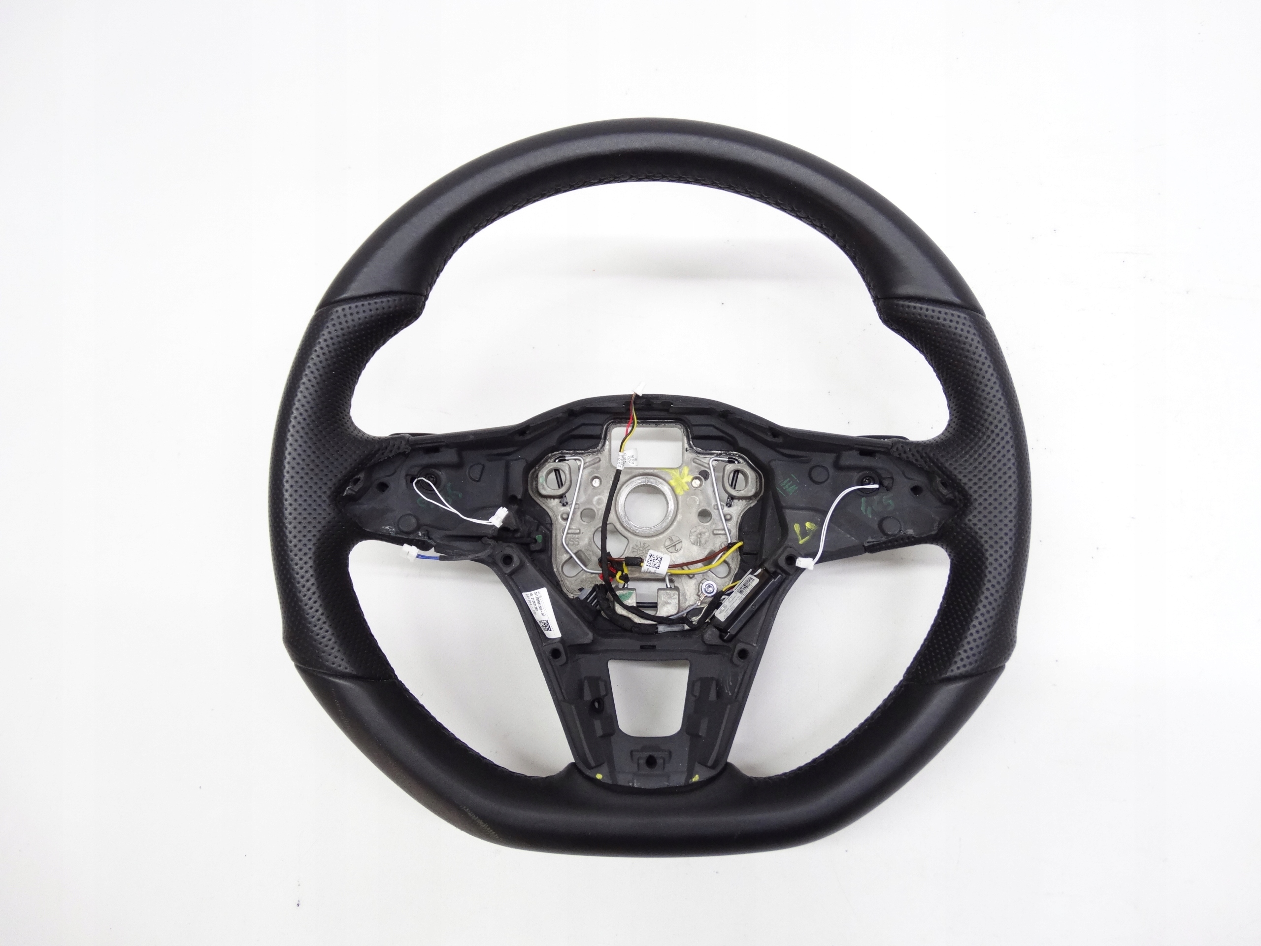 Oferujemy oryginalną skórzaną kierownicę multifunkcyjną z łopatkami zmiany biegów do VW Golf VIII R / R-Line / GTI 2020+ – wersja przeszywana czarną nitką. Kierownica w bardzo dobrym stanie, nienaprawiana, stan widoczny jest na zdjęciach.