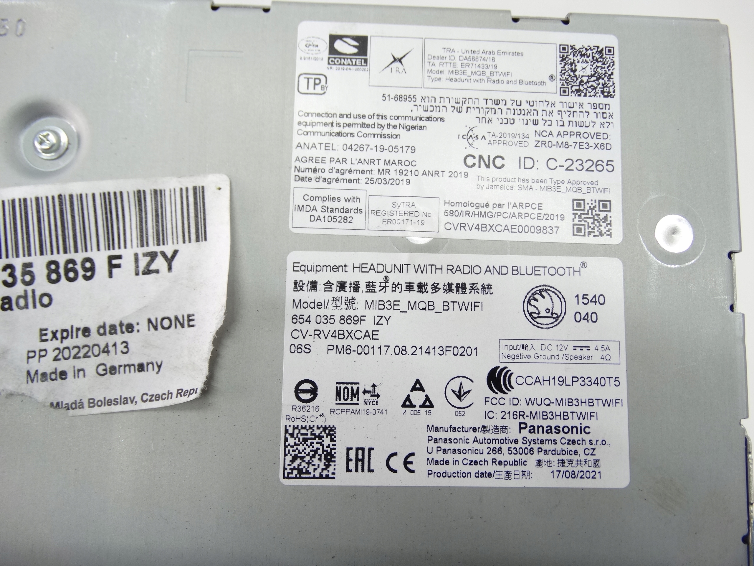Skoda Scala Kamiq MIB-3 MIB3E radio 654035869F ekran