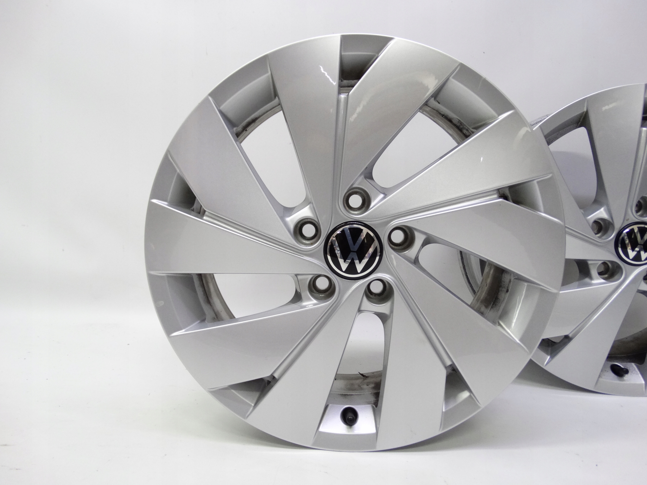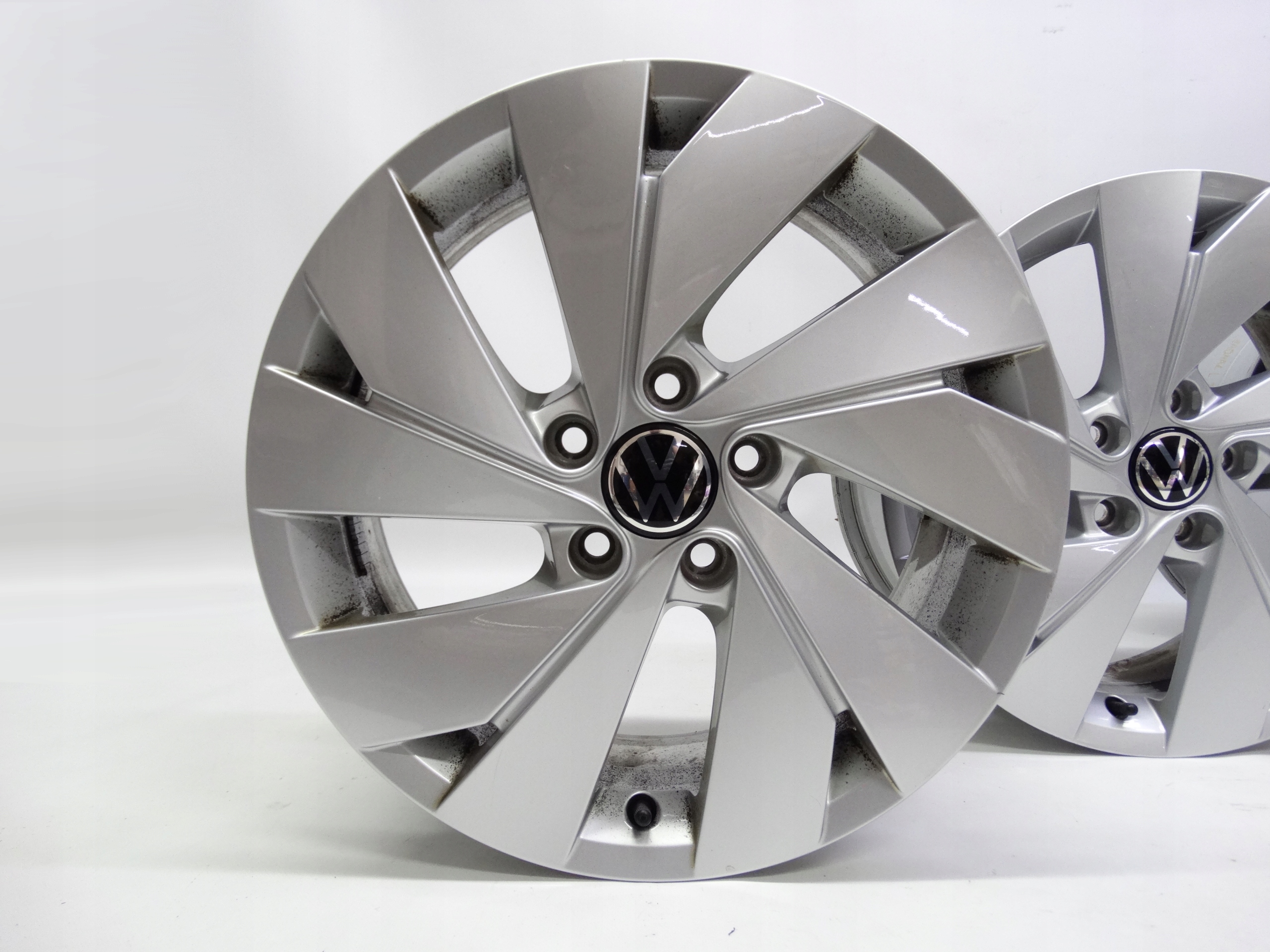 Oferujemy komplet oryginalnych felg 17 cali do VW Golf VIII 5H0 oraz innych. Felgi sprawdzone, proste, nienaprawiane, nieregenerowane, posiadają oryginalny lakier, gotowe do założenia, posiadają niewielkie ślady użytkowania. Dekielki z logo VW oraz wentyle gratis.
